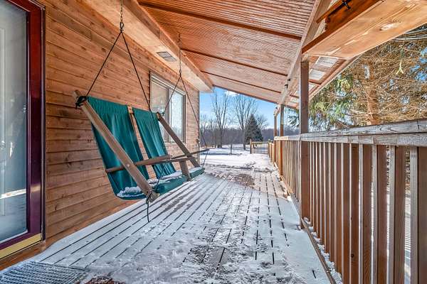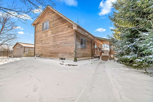 Escape to peaceful country living in this beautifully designed and updated 3 bedroom, 2 bath, move in ready home, where you are sure to see abundant wildlife passing through the property. The upstairs bedroom features an ensuite bathroom and private access to a landing and balcony with breathtaking views as far as the eye can see. Vaulted ceilings create a bright and open feel throughout the home, while the cozy kitchen adds warmth and charm to everyday living. An open deck just off the living room provides the perfect spot to relax and enjoy the surrounding nature. The property also includes an above ground pool with all equipment included. The home was completely updated in the summer of 2025, including the installation of a new furnace in 2025, offering peace of mind for years to come. A full basement provides ample storage and excellent potential for future finishing. Parking and storage are exceptional with a 2 car detached garage with garage door openers and an expansive heated pole barn with pull through access, ideal for a workshop or storing recreational vehicles, boats, lawn equipment, and other outdoor toys. Nestled in a peaceful and secluded setting with an ideal outdoor space for entertaining or unwinding, this home offers the perfect blend of modern updates and quiet country living. Call today for your own personal showing!
