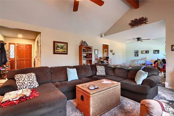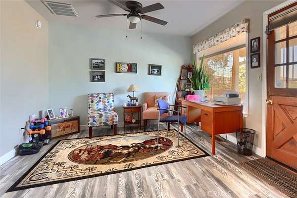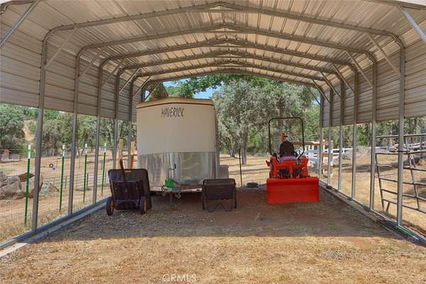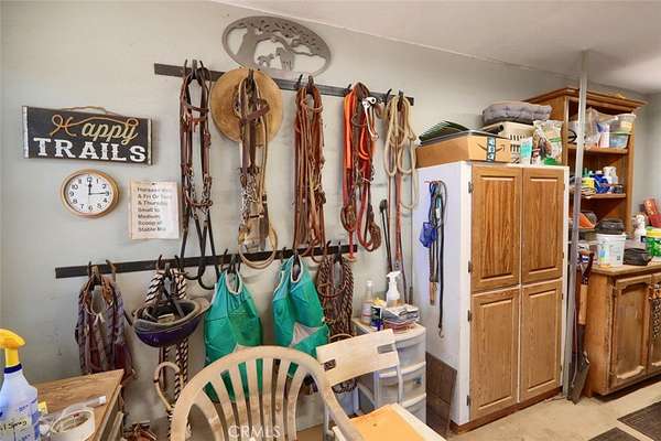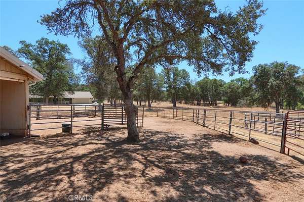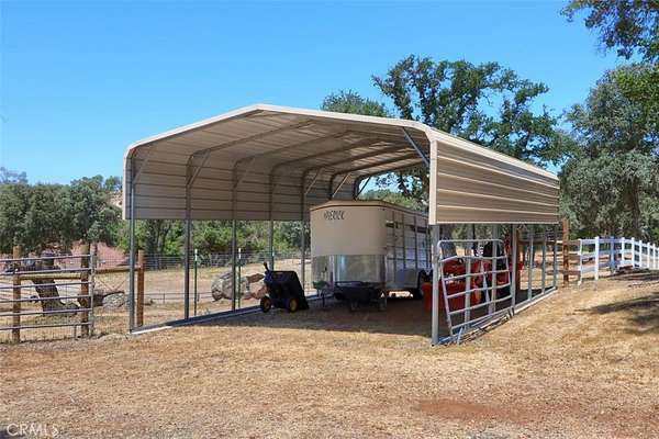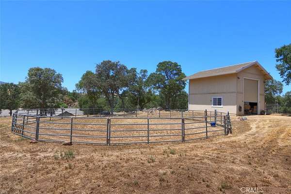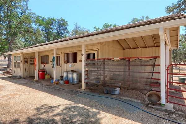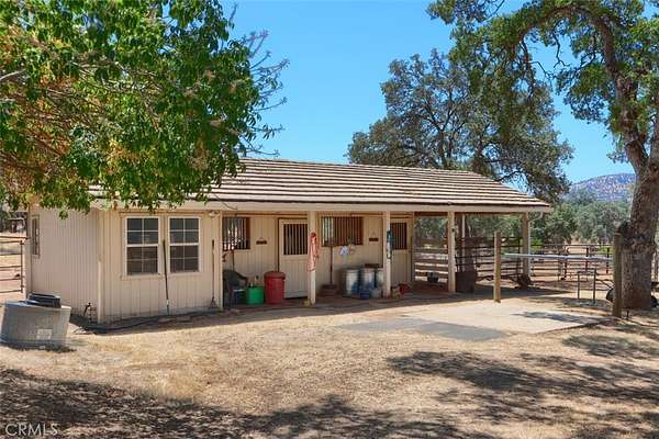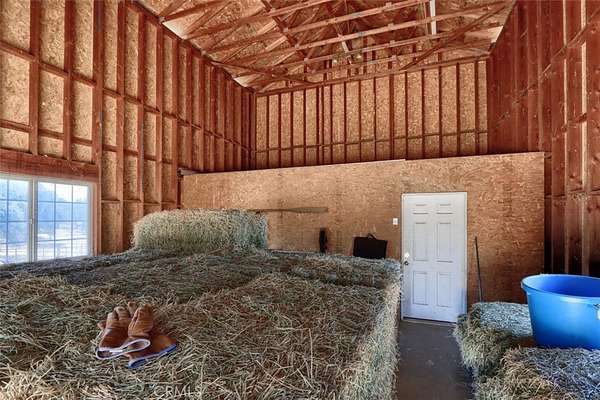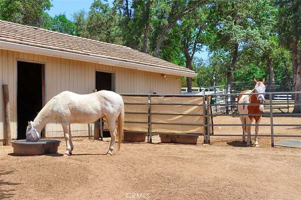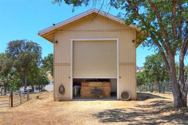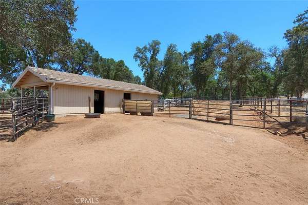 BRING THE HORSES! This fully equipped horse property is move-in ready and boasts top-notch equestrian amenities, including a horse barn with an 8x18 tack room, two spacious 12x12 box stalls with attached runs, one 12x16 open-air stall (with two solid walls) and a roomy paddock. A separate hay barn stores two full blocks of hay with an additional oversized storage room. Also included: a 60' round pen, a 98x140' riding arena, a fully fenced pasture, and direct access to scenic horseback riding trails.