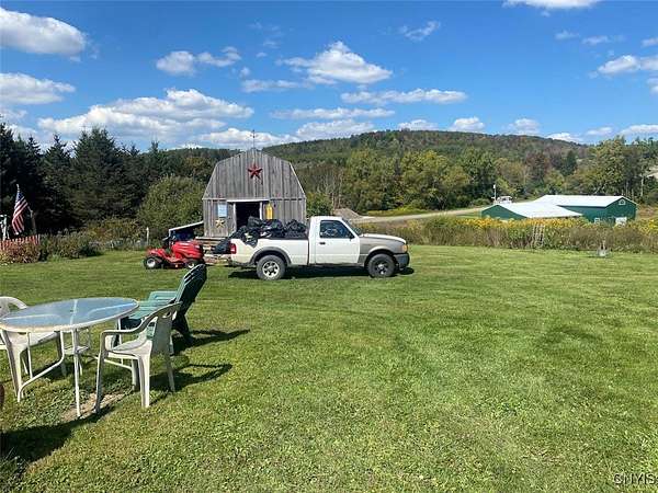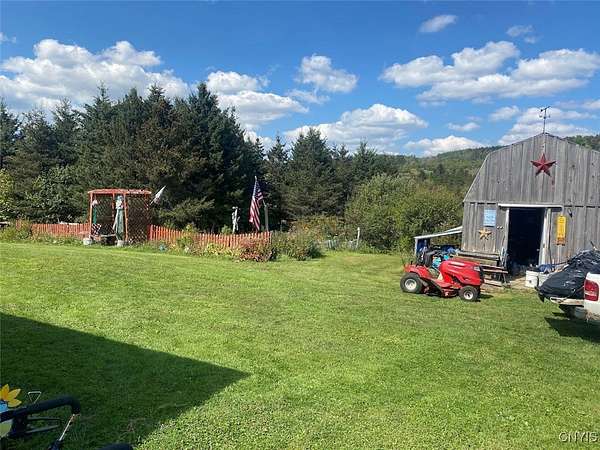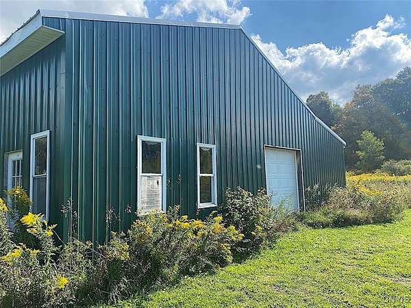 This 7.75 acre property offers residential living with potential business opportunities in West Almond NY, Allegany County. This solid three-bedroom manufactured home sits high on the land providing stunning views overlooking the large pole barn and surrounding valley. This property is located just a few hundred yards from Interstate 86 for excellent visibility and access. The home offers a cozy and comfortable interior and is being sold as-is. The impressive pole barn has a concrete floor, electric service, its own office area, and a large open workspace. The barn is well-suited for a wide range of uses including business operations, storage, or workshop space. Access is easy from County Road 2 leading to a spacious parking area and open meadow. Fiber optic service is available at the roadside and all rights convey. Outdoor enthusiasts will appreciate the proximity to thousands of acres of state land including Palmers Pond just minutes away. The area is known for excellent hunting, fishing, and hiking opportunities, along with a designated equestrian site nearby. Despite its rural setting, the property is only a short drive to the City of Hornell for shopping, dining, and services. This is a great opportunity to combine country living with business potential in a scenic setting.