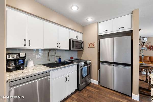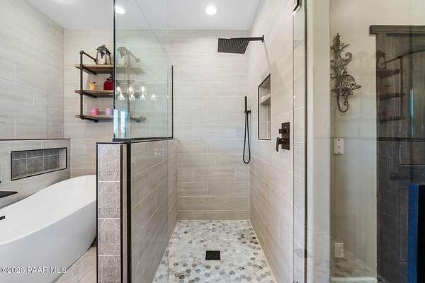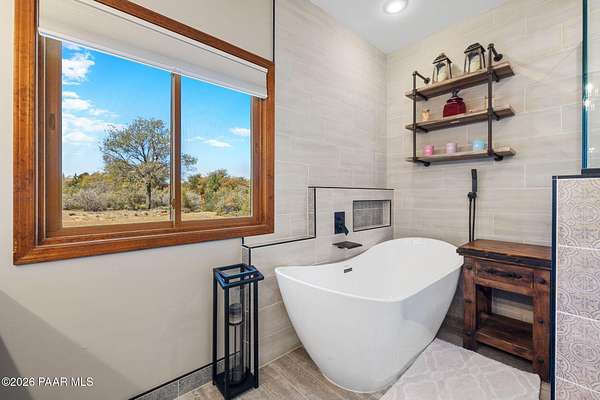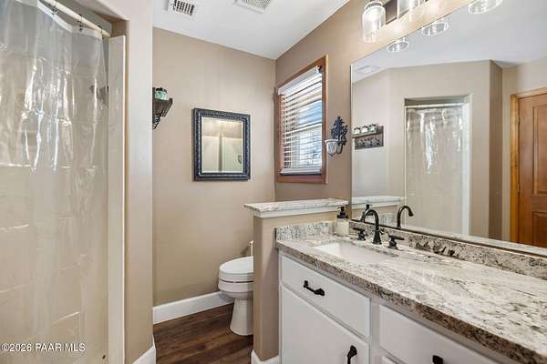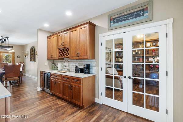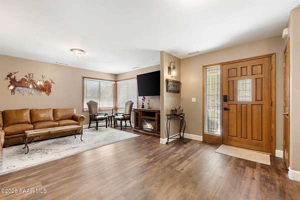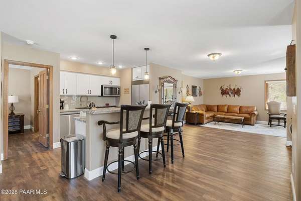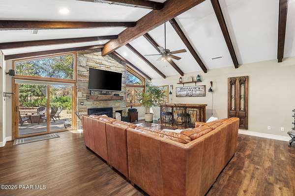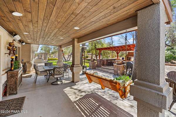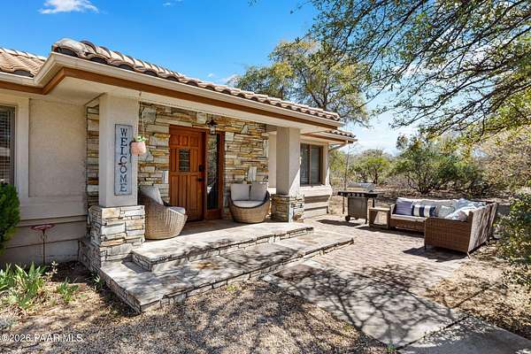 Fully renovated single-level home with guest house, pool, and 2.24 acres in the highly desirable Granite Oaks neighborhood of Prescott, Arizona. Located in the sought-after Williamson Valley area just minutes from shopping, dining, and historic downtown Prescott, this exceptional property offers the perfect blend of luxury, privacy, and the Northern Arizona lifestyle. This beautifully remodeled Prescott home sits on a flat, usable lot filled with mature oak trees and peaceful natural surroundings. Situated on a quiet cul-de-sac in Granite Oaks, the property offers rare privacy while still being only about 10 minutes from major shopping, restaurants, and everyday conveniences. Inside, the home has been completely renovated with high-end finishes and modern upgrades throughout. The open single-level floor plan features spacious living areas designed for comfort and entertaining. The kitchen showcases leathered granite countertops, a butler's pantry, and upgraded finishes that create both style and functionality. A hidden safe room adds a unique element of security and versatility. Major improvements include a new roof and solar system, providing energy efficiency and long-term value. Every element of the renovation was thoughtfully designed to create a true move-in ready home in one of Prescott's most sought-after neighborhoods. Outdoor living is equally impressive. The backyard is designed for entertaining and relaxing with a private pool, hot tub, outdoor kitchen, and real grass lawn. The large flat lot provides room to enjoy the beautiful Prescott climate, mature oak trees, and peaceful setting. The detached 2 bed 2 bath guest house offers flexible space for visitors, extended family, or a private home office. Hiking and biking trails, as well as Prescott National Forest access, are just minutes away, making this location ideal for enjoying the outdoor lifestyle that makes Prescott, Arizona such a sought-after destination.