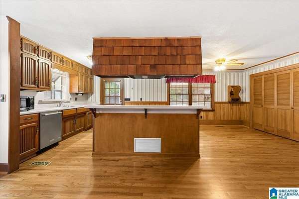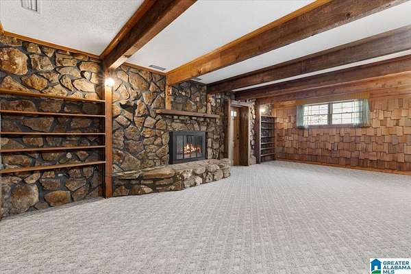TALK ABOUT VINTAGE CHARM! Nestled in a private garden setting, this master-builder owned home offers timeless details, space, and flexibility. Inside, you’ll find an open floor plan with a large eat-in kitchen with pantry, plus spacious living and dining areas with original hardwood floors and gorgeous wood details. The main level also includes a sunroom, primary bedroom with private bath and walk-in closet, and a powder room. Downstairs features a den or office, laundry room (including a laundry chute), two bedrooms with ample storage, and a large den/game room or library with a creek rock fireplace. The patio is surrounded by flowering shrubs and trees, with fruit trees, blueberries, and a spring-fed creek on 13+ acres stretching from Old Grants Mill Road well beyond view. Must see home in person to truly appreciate! The property includes a double carport, a massive workshop or garage, and a one-stall barn or playhouse. Horses are allowed. Convenient to I-20, shopping, and dining.