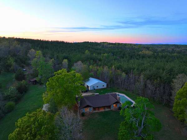 Supporting it all are multiple outbuildings that provide both flexibility and utility: a 40x40 powered garage, three pole barns, older tobacco barns, and an 8-stall horse barn from the property's former life as a working farm. Whether you're envisioning equestrian use, event hosting, hobby farming, or simply keeping it wild, the bones are here--and they're solid.