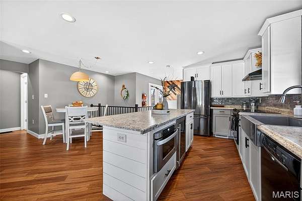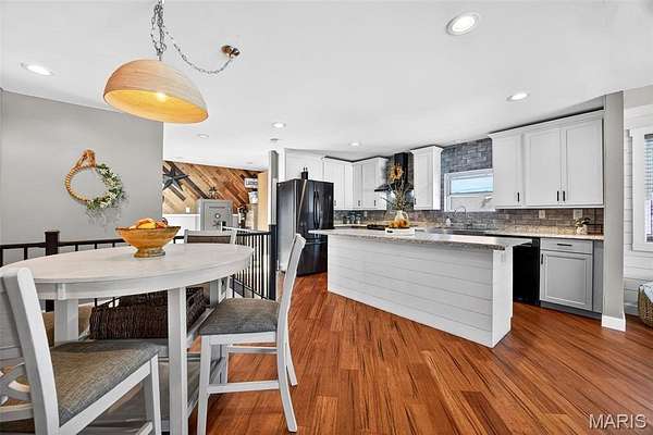 The main level is designed for everyday ease, featuring a spacious primary suite and convenient main-floor laundry. Hardwood floors, fresh paint, and updated lighting create a bright, cohesive feel throughout. The kitchen boasts new cabinetry, a striking backsplash, & a pot filler--combining function with elevated design for effortless entertaining. Since ownership, extensive improvements have been completed, including a new roof, gutters, windows, siding, electrical, and plumbing, providing both beauty and confidence in the home's long-term value.