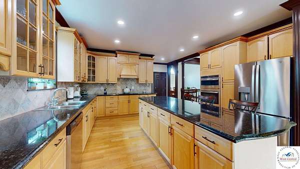 This stunning 5-bedroom, 3-bath home is perfectly situated on 42.5 m/l acres, offering the ideal mix of comfort, functionality, and room to roam. Step inside to find a welcoming dining room, spacious living room, and a large eat-in kitchen with granite countertops and plenty of prep space. The main floor features the primary suite with a luxurious en suite bath including a jetted tub, stall shower, and double vanity, plus two additional bedrooms for convenience. The fully finished walk-out basement provides endless possibilities and could serve as a second living quarters. It includes a living room, full kitchen, large laundry room, pool table area, two bedrooms, a full bath, office space, and additional storage. Outside, enjoy a 3-car attached garage and a large shop--perfect for hobbies, equipment, or extra workspace. With 42.5 acres of land, this property offers privacy, recreation, and space to create the lifestyle you've been dreaming of.