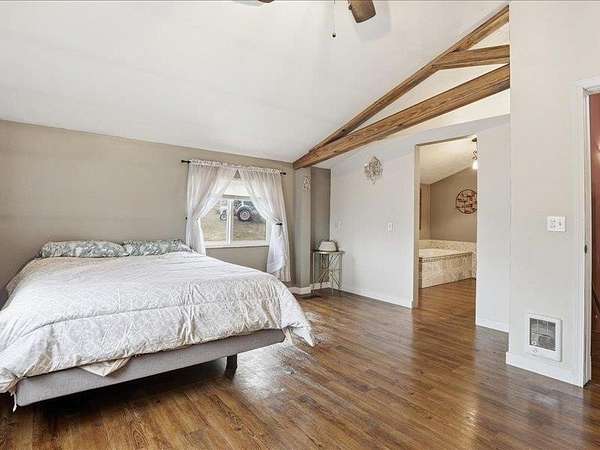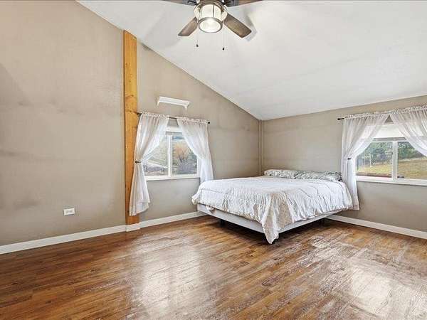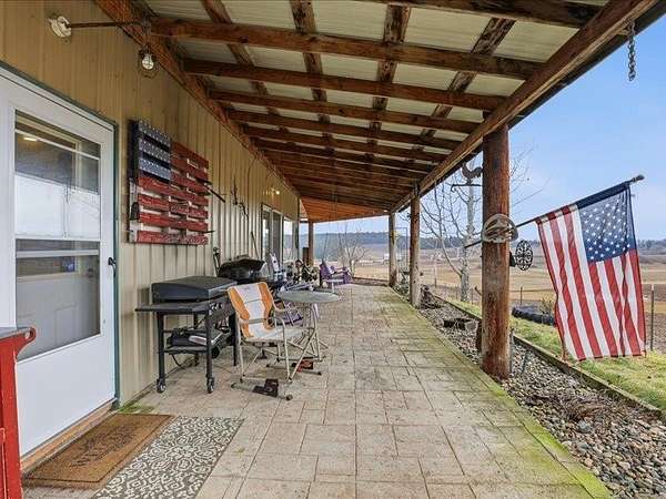 Experience country living at its finest in this stunning barndominium-style home offering approx. 4,000 sq ft, 6 bedrooms, and 4 bathrooms. The spacious main-floor primary suite features a walk-in shower, while main-floor laundry adds everyday convenience. Inside, enjoy engineered real hardwood floors, granite countertops, and rustic wood doors and trim that bring warmth and character throughout. The impressive 48x40 shop with a 16x14 door is perfect for RVs, equipment, or hobbies. In the shop you'll love the 30X20 workshop or hobby room. Step outside to a large covered patio, greenhouse, and 10 acres of rolling hills and sloping pastures - all framed by breathtaking sunset views. A strong 7.5 GPM well completes this exceptional property, blending comfort, function, and wide-open space in ONE remarkable setting.