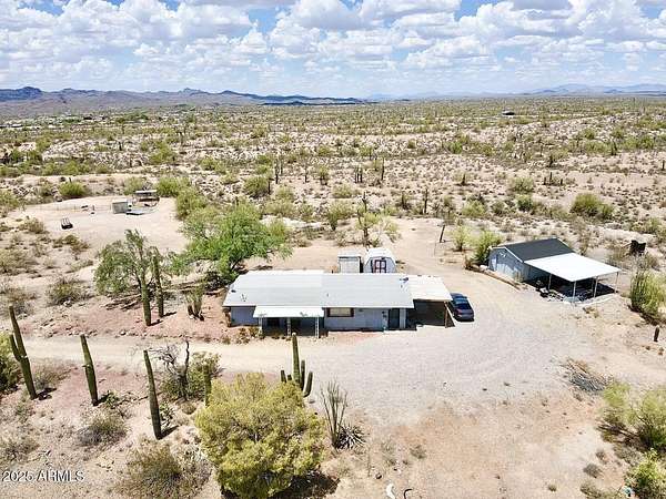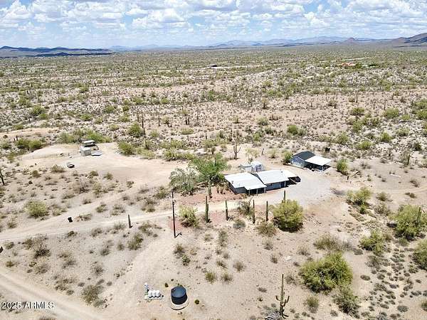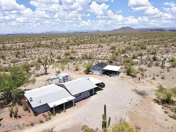 This property offers a unique opportunity to create your ideal desert retreat in a truly special location. The existing mobile home is currently being lived in but could easily be replaced, making way for your dream build. With underground infrastructure already in place, future owners can remove the current structure and either construct a custom stick-built home or place a new manufactured home with less time and cost than starting from scratch. Perfectly positioned for privacy, this parcel borders State Trust Land, offering open views and a peaceful natural setting surrounded by towering saguaros and pristine desert landscape. Despite the quiet setting, it remains just a short drive from Surprise, Wittmann, and Phoenix-combining privacy with convenience.