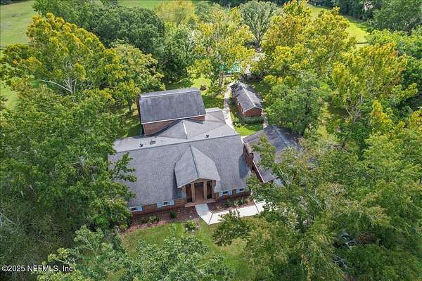 Design your legacy retreat on over 9 acres in St. Johns County, where Open Rural (OR) zoning allows for equestrian facilities, barns, guest cottages, gardens, or additional residences to be built, giving you the freedom to shape the property to your vision. The large brick home serves as the starting point for your dream estate, set back among mature trees with a pool, detached garage, and pump house already in place. Inside, spacious living areas, fireplaces, an office with built-ins, and architectural details like a stained glass window provide a strong foundation for updates and personal touches. With ample acreage, privacy, and room to expand, this rare offering allows you to create a private retreat or family compound just minutes from Historic St. Augustine and Jacksonville, blending country living with convenient access to city amenities.