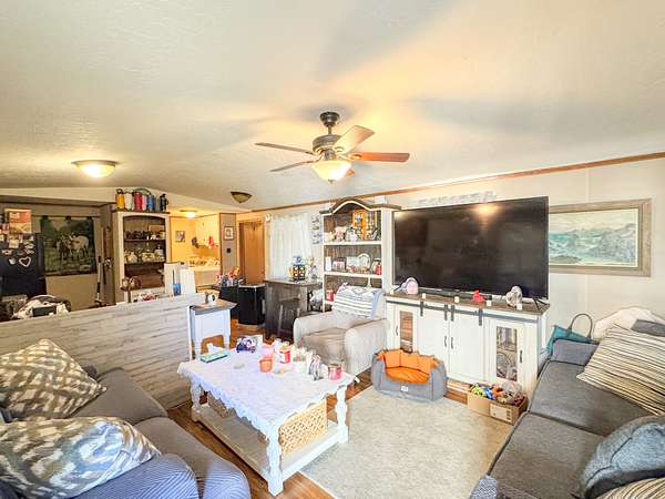 Charming manufactured home situated on 5.01 unrestricted acres! This well-maintained 2-bedroom, 1-bath home features an open floor plan with durable laminate and vinyl plank flooring throughout, and a spacious primary bedroom with a walk-in closet. The property offers plenty of room to build another home, and per the sellers, it also has the potential to be subdivided—making it a great investment opportunity. Don’t miss your chance to own a home with acreage and endless possibilities! All offers will be contingent upon the sellers securing suitable housing.