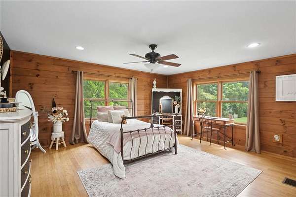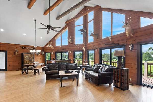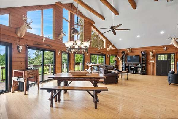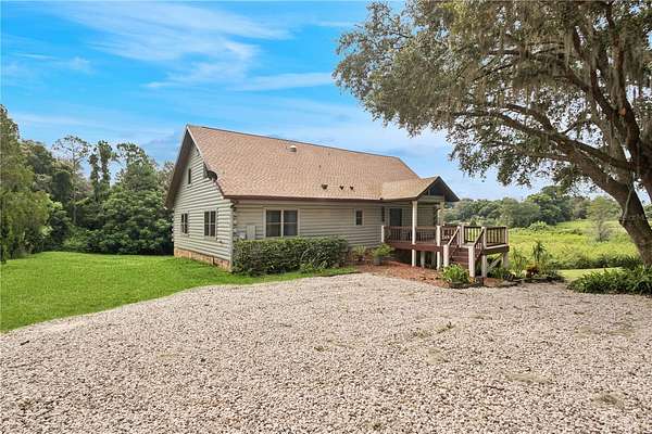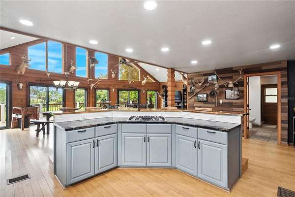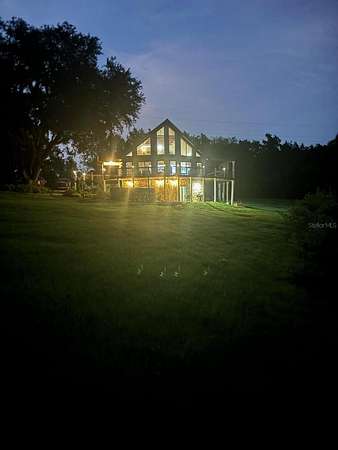 Under contract-accepting backup offers. Near the Ocala forest for hunting, fishing and awesome horseback riding! Stunning custom built 3 story log cabin with wrap around decks sitting on 3 acres with scenic waterfront view. Beautifully done with all the amenities! 4800 heated sq ft with 4 bedrooms, 3 full baths. Multiple Zoned heating and cooling system with 2 units. The flooring is a mix of ceramic tile and gorgeous bamboo wood. Thermal Anderson windows, and recessed lighting everywhere. Main floor has 2 bedrooms, bath with laundry, great room, and custom built island. Access to the wrap around deck is accessible through BRAND NEW custom sliding doors off the great room. Kitchen is equipped with wood cabinets with self closing drawers, gas cooktop, dual electric ovens, under the counter lighting and more. The 700 sq ft Master suite with loft is on the 3rd floor overlooking the stunning main floor and has a bathroom with a large walk-in shower, whirlpool tub, two sinks and skylight. The walk out basement has a great room, kitchenette, full bath and large bedroom. Let your imagination run wild with the 2 huge bonus rooms down there! Could be an in-law suite, rental income, hunting/fishing lodge or just space for your large family activities!