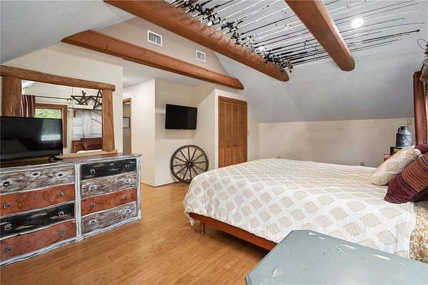 - Built-In Features, Ceiling Fans(s), Central Vaccum, Eat-In Kitchen, High Ceilings, Kitchen/Family Room Combo, Open Floorplan, Primary Bedroom Upstairs, Solid Wood Cabinets, Split Bedroom, Thermostat, Vaulted Ceiling(s), Walk-In Closet(s)