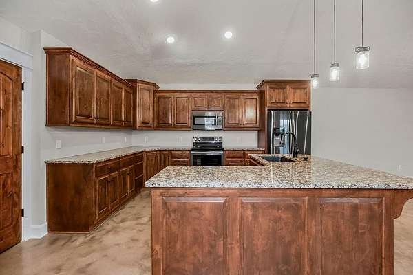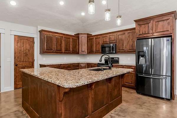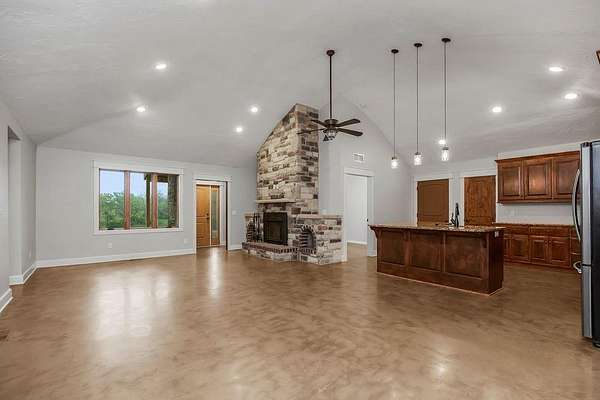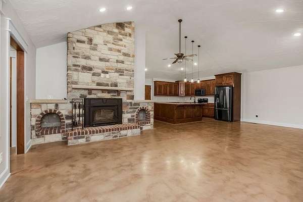 Beautiful Earth-Contact Home on 16+ acres in the sought-after Smithville area! Discover peace and privacy in this stunning 3-bedroom, 2-bath earth-contact home nestled on 16+ acres with the additional lot included. The open-concept main living area features a cozy stone fireplace and a gorgeous custom kitchen with granite countertops and stainless steel appliances. The spacious primary suite offers a walk-in closet and a beautifully up-to-date bathroom with a walk-in tiled shower and separate soaking tub. Enjoy the oversized two-car garage with extra workspace, picturesque property with pond, and energy-efficient solar panels-perfect for those seeking a serene country lifestyle just minutes from town.