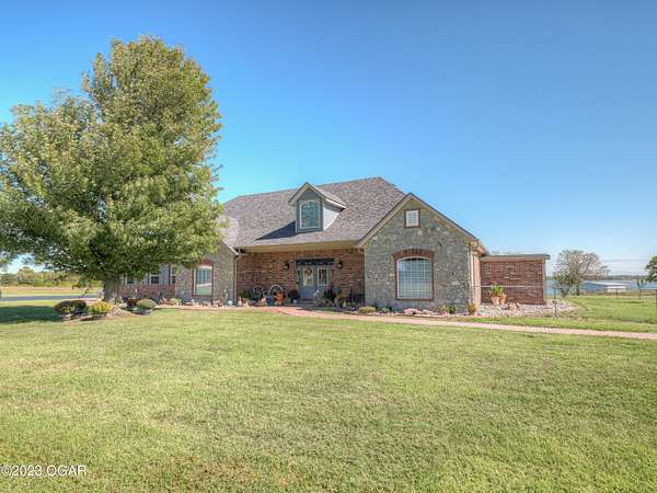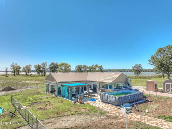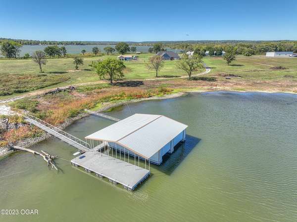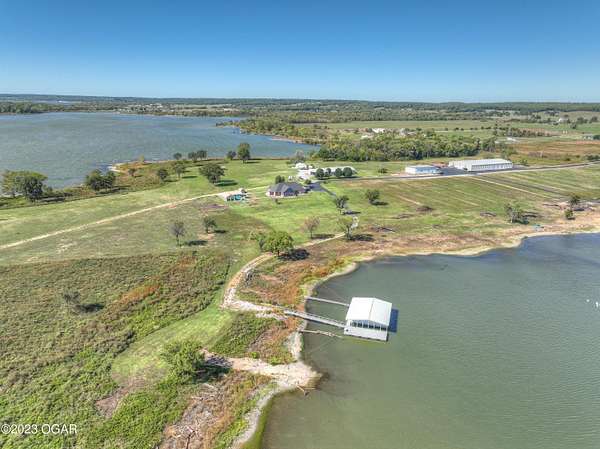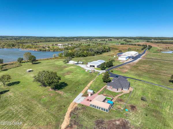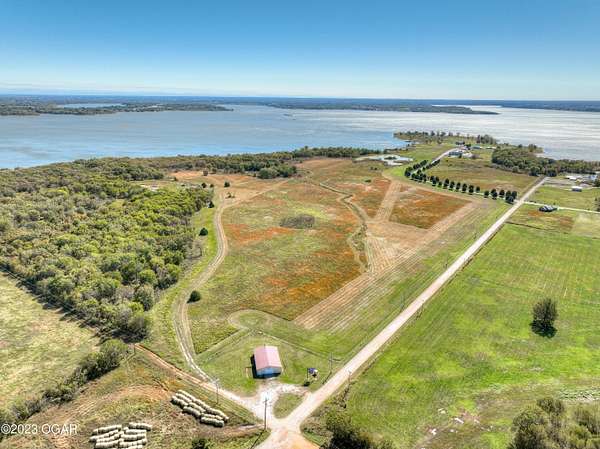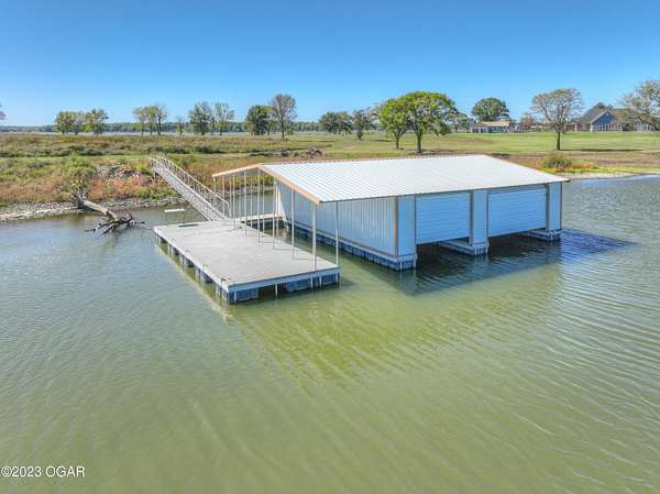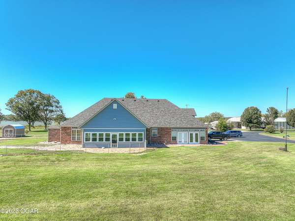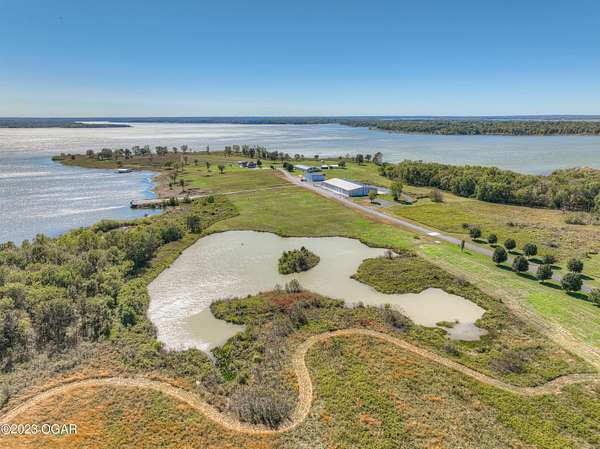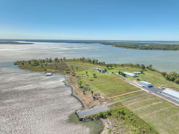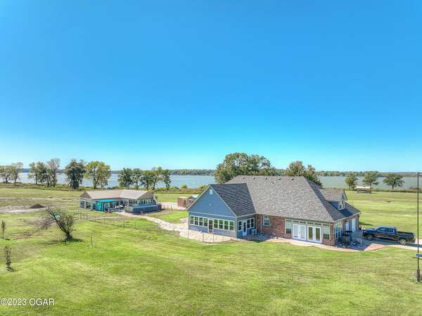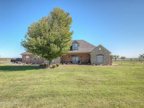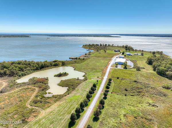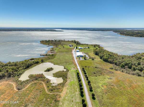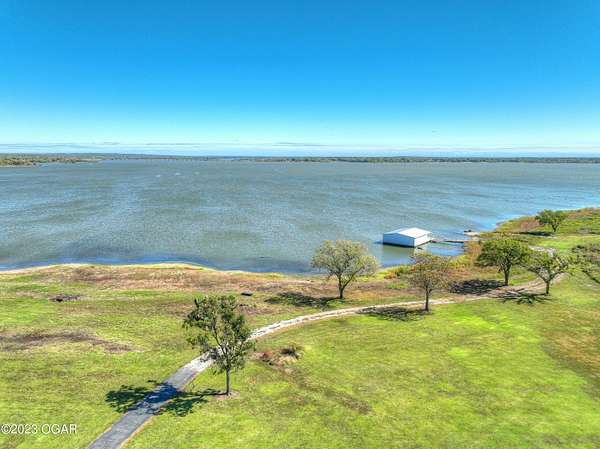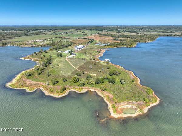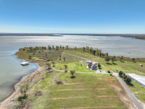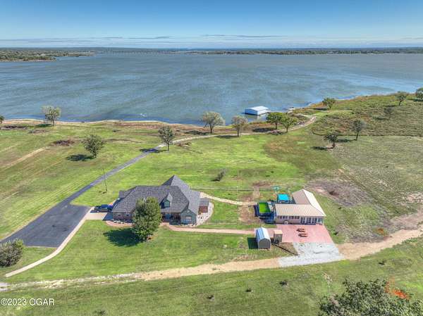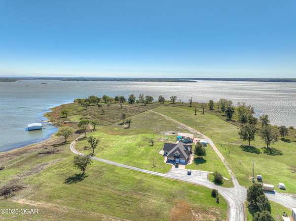 Behind this gated property lies a breathtaking estate nestled on over 155 acres, with almost 2 miles of Grand Lake shoreline. Upon entry, you will be overtaken with panoramic views of Sailboat Bridge as you drive down the treelined paved driveway onto your very own peninsula. Featuring a beautiful brick home with over 3483 square feet of living space. Open concept floor plan, gourmet island kitchen featuring custom oak cabinets, granite counter tops, and a separate butler's pantry for all your storage needs. Eye catching views from every picture window of the house. Large primary suite with attached above ground storm shelter/safe room, luxurious primary bathroom complete with walk-in shower and soaking tub. 3 additional spacious guest bedrooms. Click on ''More'' for additional details!!