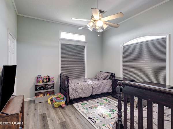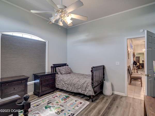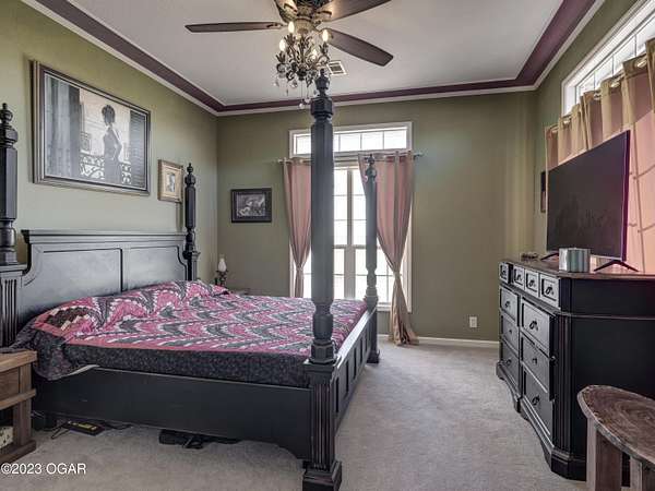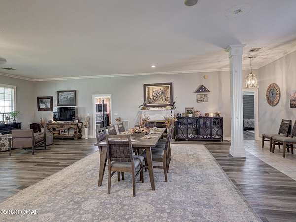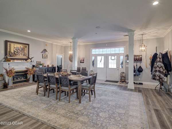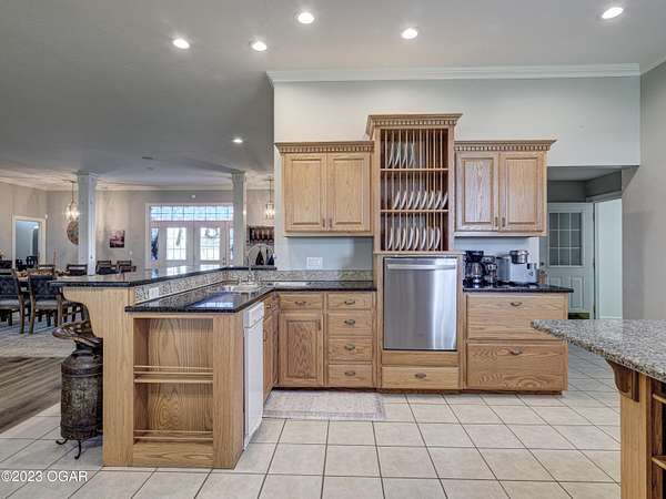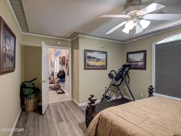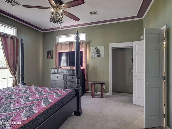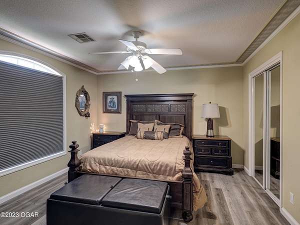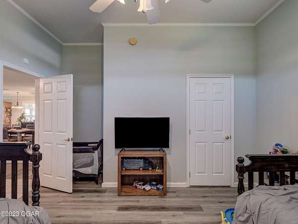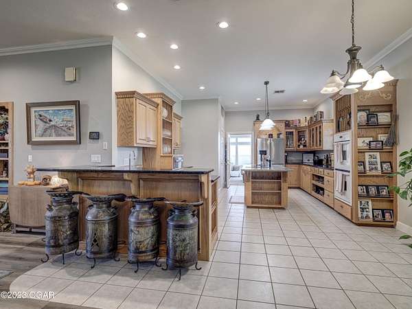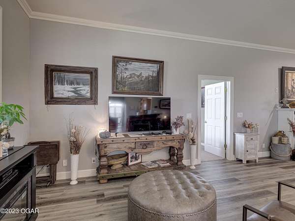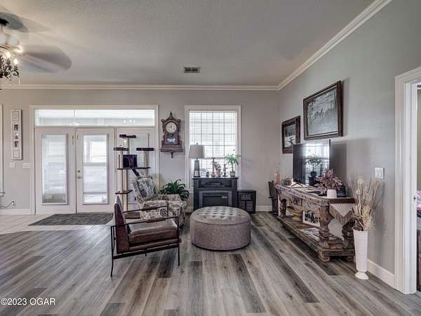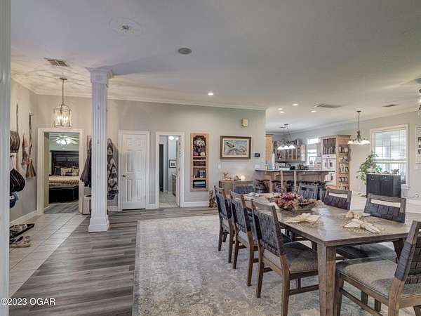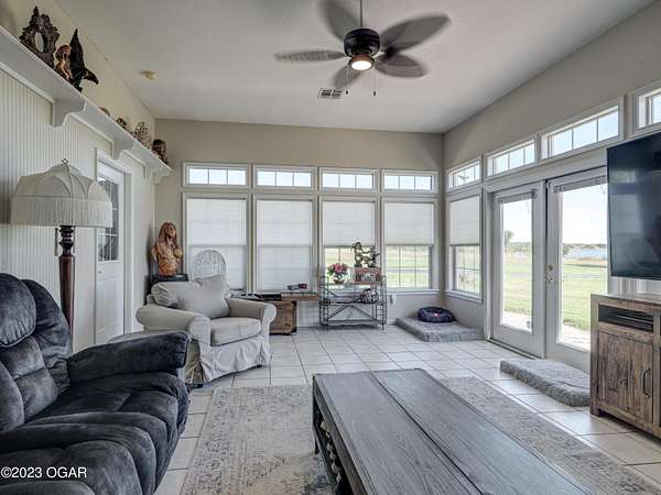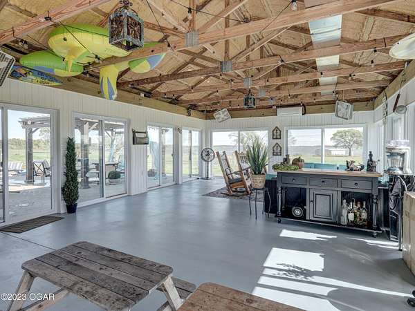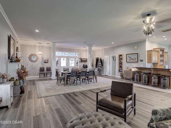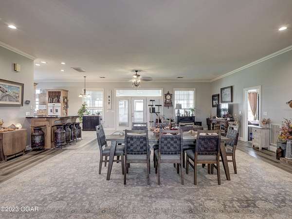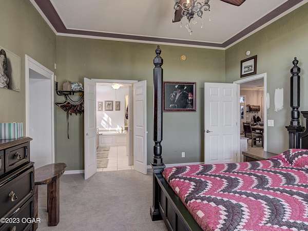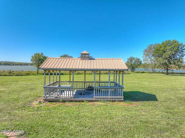 Behind this gated property lies a breathtaking estate nestled on over 155 acres, with almost 2 miles of Grand Lake shoreline. Upon entry, you will be overtaken with panoramic views of Sailboat Bridge as you drive down the treelined paved driveway onto your very own peninsula. Featuring a beautiful brick home with over 3483 square feet of living space. Open concept floor plan, gourmet island kitchen featuring custom oak cabinets, granite counter tops, and a separate butler's pantry for all your storage needs. Eye catching views from every picture window of the house. Large primary suite with attached above ground storm shelter/safe room, luxurious primary bathroom complete with walk-in shower and soaking tub. 3 additional spacious guest bedrooms. Click on ''More'' for additional details!!
