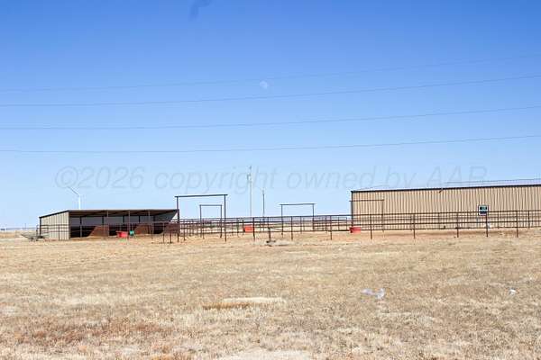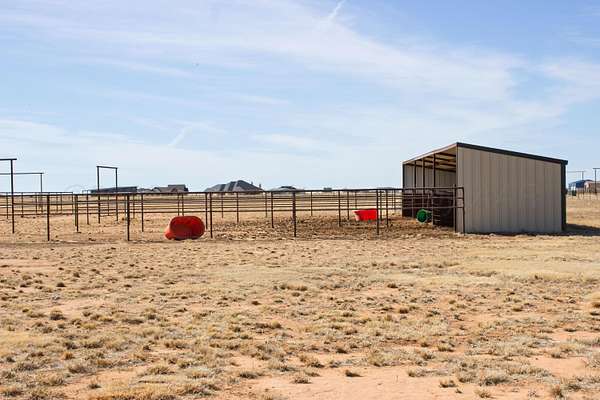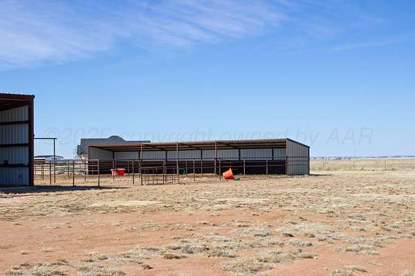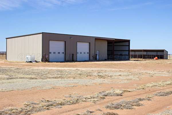 Just minutes from Canyon, this 10-acre property is fully equipped and ready for your dream home. It features a 30' x 50' spray foam insulated shop with two large east-facing doors, a 30' x 25' open bay, and covered barn areas with 220 amp plugs. For livestock, there are two 12' x 24' lean-tos, two turnout pens, three shed row pens, a large square pen, and a 100' x 100' pipe riding arena. The entire property is fenced with barbwire and has a pipe entrance. Two wells are on-site-an Ogallala and a newer Santa Rosa (currently in use), with the ability to switch between them. The one-bedroom efficiency apartment includes a 3/4 bath, loft, living area, 40-gal water heater, and is wired for a mini-split. Underground utilities and power are in place.