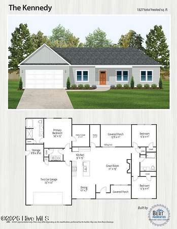 *Builder offering $2,500 in Use As You Choose + Gutter Installation!* Welcome home to the Kennedy floor plan! Nestled in an agricultural and farming community with no HOA, you are sure to love this new construction home! Situated on 2.45 acres, this home features 3 bedrooms, 2 full bathrooms, and an oversized 2-car garage at approximately 1,827 hsqft. The open concept in the main living area offers the perfect blend of comfort and convenience. Take note of the all-plywood cabinets (no particle board) with soft-close hinges and granite countertops throughout. The large kitchen island has plenty of space for hosting dinner parties and game nights! The extra-large primary bedroom closet and the walk-in pantry are sure to suit your storage needs. The primary bathroom has a separate soaker tub and shower along with a 72'' dual sink vanity. You don't want to miss out on this home! Schedule your showing today! *Ask about our preferred lender credit! Home is just starting construction, photos are of a similar home!