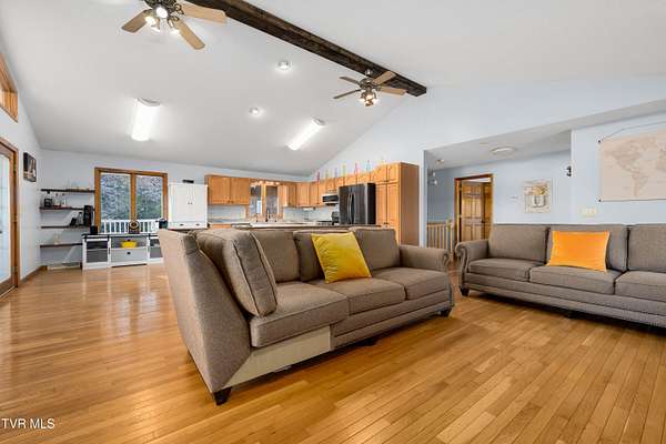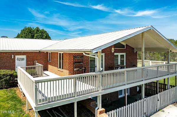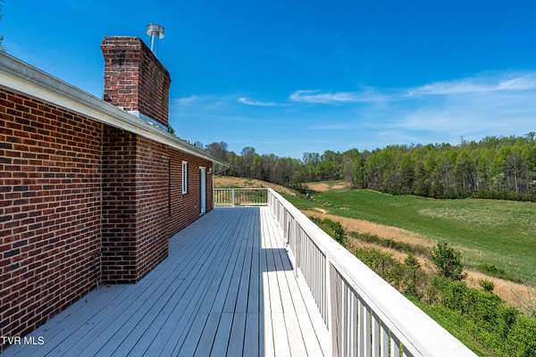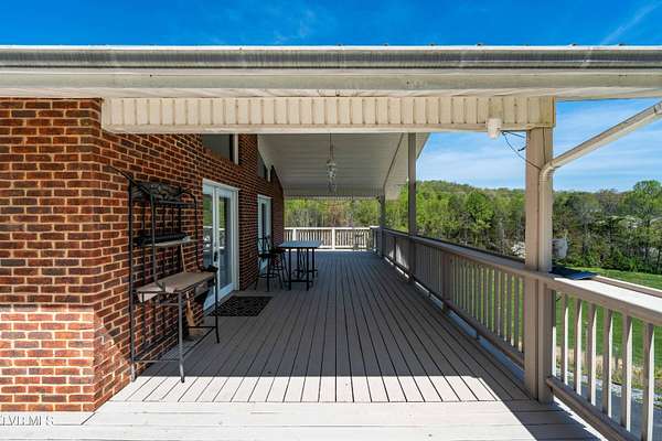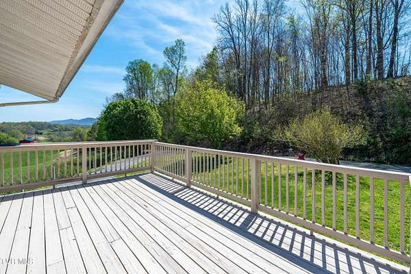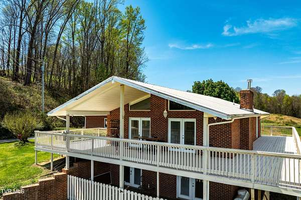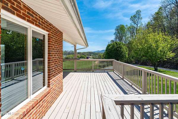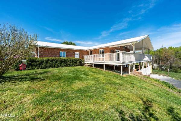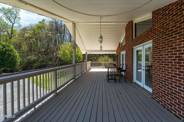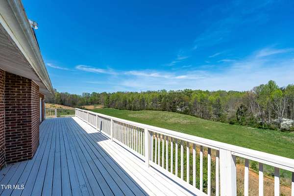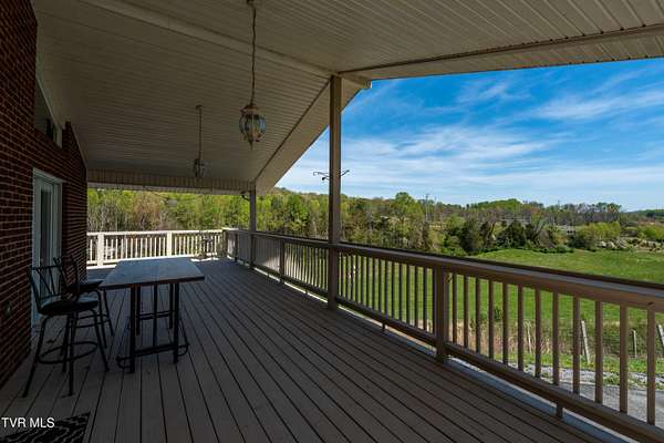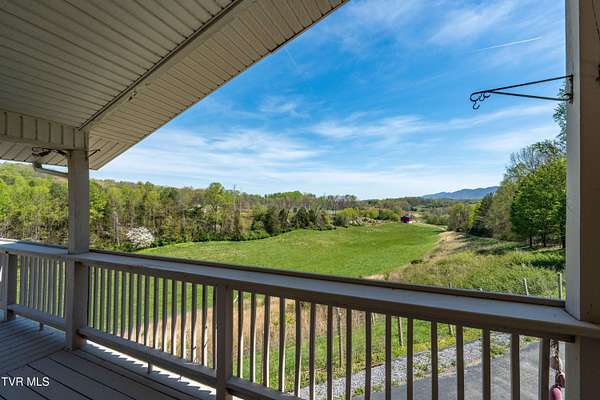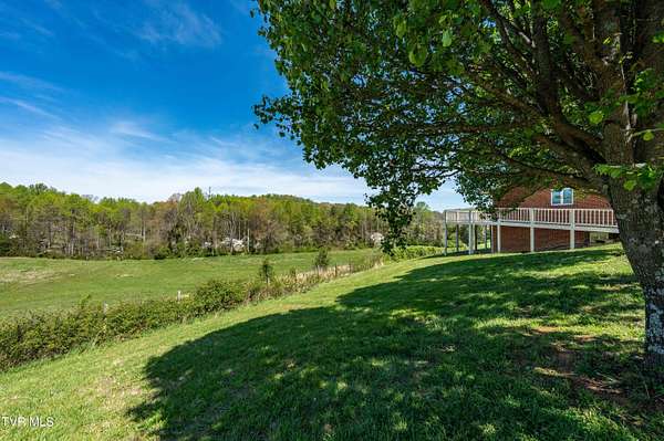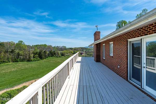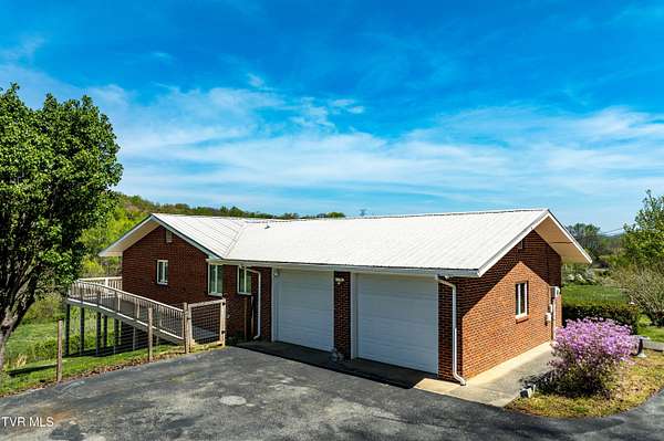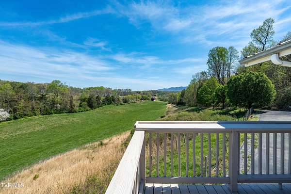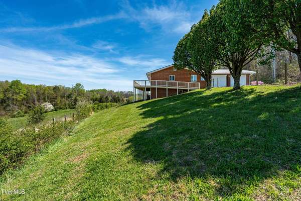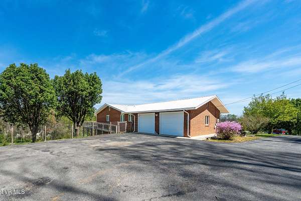Privacy, space, and stunning mountain views! Escape to your own private retreat with this beautiful brick ranch home nestled on just over 23 acres featuring a spring-fed pond, open pasture, and incredible mountain views. This well-built home offers 3 bedrooms, 2.5 baths, and a main-level primary suite with convenient access to the attached 2-car garage. Inside, you'll find an open floor plan with hardwood floors throughout the main level, solid wood doors, vaulted ceilings in the living room, and a cozy brick gas-log fireplace. The spacious kitchen is the heart of the home, boasting leathered granite countertops, stainless steel appliances, a gas range, and two sets of French doors leading to a covered porch, perfect for enjoying those breathtaking sunrises. The primary suite features French doors opening to the wrap-around deck, a walk-in closet, and a luxurious master bath with double vanities, soaking tub, and walk-in shower. The finished basement offers endless possibilities, ideal for guests, family, or even an in-law suite with its own driveway, walk-out access, den with wood or coal stove for additional or back-up heat, two additional bedrooms, and a full bath. Additional features include an oversized climate-controlled safe room for added protection and storage, a large wrap-around porch with a covered section overlooking the pastures and mountains, a large barn with power and water available at the road, and a detached workshop with power and an RV hookup with water. All pasture land is fully fenced and ready for animals. Numerous updates have been completed, making this home truly move-in ready. HVAC replaced in 2020, septic pumped in 2024, water heater installed in 2015, appliances new in 2022, and barn roof replaced in 2023. Other notable features include all Andersen windows and French doors, a whole-house water system with softener and reverse osmosis drinking water at both the kitchen sink and refrigerator, and Greenbelt program eligibility for substantial tax savings and very low county taxes (no city tax). A convenient dog-fenced area surrounds the home, separate from the pasture, providing a separate space for pets. This is a rare find offering all of this privacy, acreage, and mountain beauty, yet conveniently located just 10 minutes from downtown Jonesborough and 15 minutes from Johnson City!