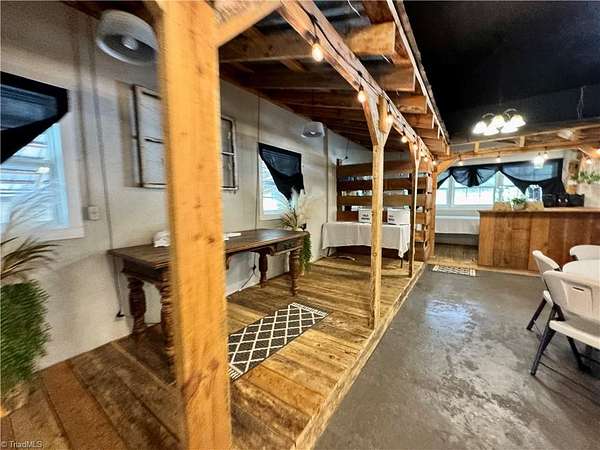 Est $4,131/moBarndominium on 30 riverfront acres, featuring the renowned "Corn-Crib/Venue." The primary building offers 1 bedroom and 1 bath, a wood-burning stove/heat pump, 12-foot ceilings, 8-foot doors, and a 2,800 sq ft warehouse/workshop with an oil-changing pit, 13-foot and 12-foot bays, and air compressor. The venue spans approximately 76x44 feet, including a reception area, 1.5 bathrooms, office, and storage. Property also includes an 80x80 concrete pad and fertile bottom land abutting the Ararat River. Call today!