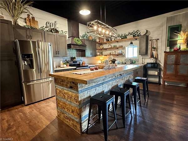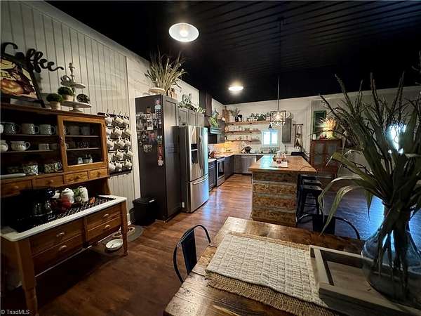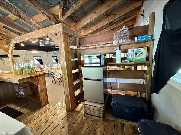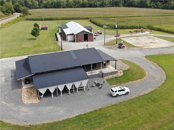 Est $3,695/moBarndominium on 30 riverfront acres, featuring the renowned "Corn-Crib/Venue." The primary building offers 1 bedroom and 1 bath, a wood-burning stove/heat pump, 12-foot ceilings, 8-foot doors, and a 2,800 sq ft warehouse/workshop with an oil-changing pit, 13-foot and 12-foot bays, and air compressor. The venue spans approximately 76x44 feet, including a reception area, 1.5 bathrooms, office, and storage. Property also includes an 80x80 concrete pad and fertile bottom land abutting the Ararat River. Call today!