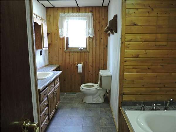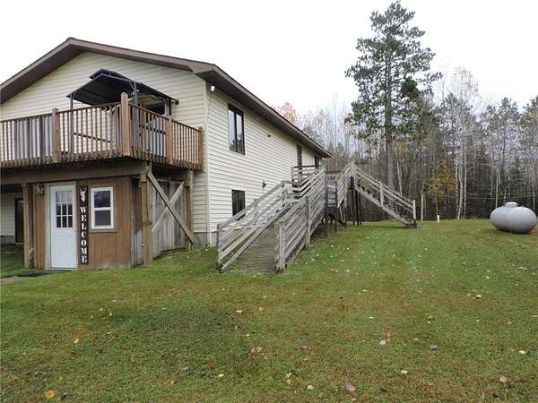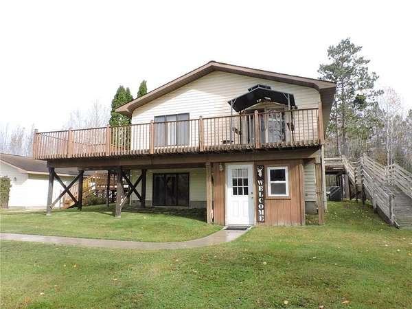 Very spacious and private location. Walking distance to the lake with beach and public landing and dock. The main level of the house has 2 bedrooms and 2 baths with lots of closets. The skylights have remotes to open. There are 2 patios and 2 decks with the rear deck having a handicap ramp. The lower level is walkout and could be a separate unit. The 4 bedrooms are dorm style with 2 on each side of the hall and access to the second bedroom on each side is through the larger bedroom. All bedrooms have closets. Basement bathrooms only have showers in each. House has a more rustic decor with lots of wood. The basement kitchen is more of a kitchenette and dining area. Main level kitchen is more updated with a nice island area with a sink and room for stools. The garage is a 2+ car garage with a large second workshop area that is heated. The basement also has in floor heat and has a plug in for a generator. and also off peak heat. Roof was reshingled 10 years ago with 30 year shingles. Furnace and central air are both about 5 years old. Snowmobile trails are at the end of the driveway for easy access and Mount Itasca is only a few miles away .
