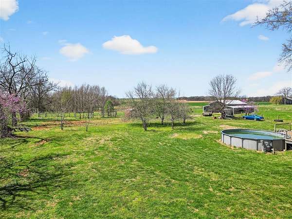 Calling all Homesteaders! Discover the charm and peacefulness of country living on the stunning 9 +/- acre mini farm in Franklin, Kentucky. This property boasts an updated 1930’s 1,684 +/- SF farmhouse featuring 3 spacious bedrooms and two updated bathrooms. The primary bedroom is located on the first floor and the other two bedrooms are upstairs. There is a newly built dining/sunroom and a separate laundry room. An additional room on the first floor offers a great space for an office, crafting or a playroom for the kiddos. The roof and siding were replaced in 2021. Farmland surrounds the property offering stunning views including and beyond the 9 +/- acres. There are four buildings on the property, offering lots of versatility for use of the property. The newer built 40 x 44 barn is ideal for livestock. A 30 x 40 detached garage/workshop with electric service is located close to the home. Directly behind the home sits a 12 x 20 storage shed, perfect for storage or hobbies. Additionally, a metal 12 x 20 storage shed is great for storing yard and gardening tools and other outdoor equipment. A large 24’ diameter, 52” walls, above-ground pool with a nice 1,000 SF deck is included, along with all necessary equipment, making it perfect for summer fun and relaxation! This property is an excellent option for homesteading enthusiasts. Other highlights include mature grapevines, a large well-established asparagus patch, and apple and peach trees! Of course, there is ample space for a large garden! Goats and chickens are current residents of the barn and the pond will be useful if livestock or horses are included in your plans. There is also ample fencing on the property. This unique property is a rare find and offers the perfect blend of home, farm and leisure. Perfect for raising a family or unwinding in retirement.