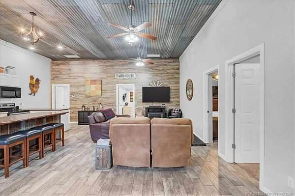 Incredible 11+/- Acre Estate in Broken Arrow - This picturesque property features both a beautifully updated main residence and a spacious guest house. The main home has numerous recent upgrades including a newer roof, fresh interior paint, updated flooring and HVAC system. The layout includes 3 bedrooms and an office on the main level, with 2 additional bedrooms upstairs along with a second living area and a game room-perfect for family living or entertaining. Enjoy the open-concept design with a custom kitchen that flows effortlessly into the living and dining spaces. Step outside and take in the gorgeous backyard: Mature trees, natural boulders, walking trails, a beautiful creek that always has water. With the unique characteristics of the rock formations you feel like you have your own private retreat. All the arrowheads in the pictures were found along the creek on this property. The 1,400 sq ft guest house features 4 bedrooms a large open-concept layout, and an oversized kitchen-ideal for a mother-in-law suite, guest accommodations, or income producing Short Term Rental! Located just under 3 miles from the Creek Turnpike, you can enjoy the peace of country living without sacrificing city convenience. The property includes multiple fruit trees (Plum, pear, peach, apple, walnut and pecan trees). bring all of your animals to this one-of-a-kind property is a must-see because you won't believe it's here in Broken Arrow!