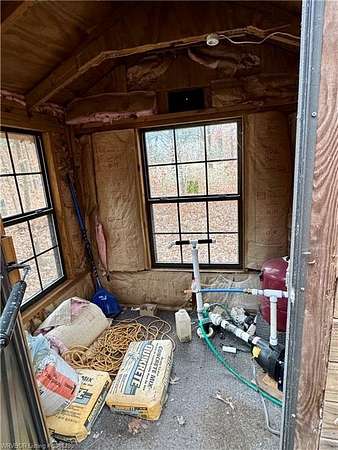 The land is scenic and ready to explore, featuring rock ledges, wooded terrain, and a flat area at the lower portion of the acreage that could be suitable for horses, though the property is not currently set up for equestrian use. A 450 sq ft studio cabin with two screened-in porches, new siding, and a new roof is already in place. The cabin is a fixer-upper but includes a full bathroom and small kitchen. Electric and propane are available on the property. A shallow well exists but does not currently provide sufficient water to the cabin; a traditional well or rainwater catchment system will be needed.