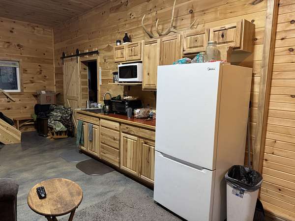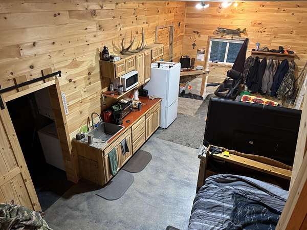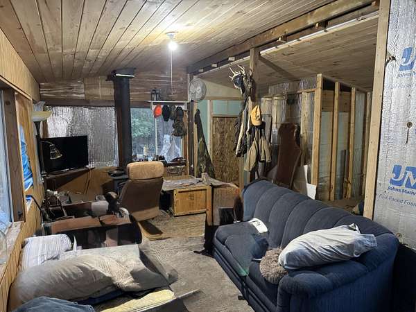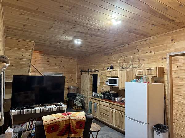 Nature lover? DO NOT scroll past this one! Located conveniently on a paved roadway yet winding down the long driveway you escape to your very own park like paradise. This newly renovated barndominium sits on 35 acres! Rare to find! There is a mixture of hardwoods and some open areas. Another prime feature is the winding stream that travels throughout the property. You will see wildlife of all kinds right from your balcony! Like to hunt? Your trophy is waiting for you here! Inside the main home is an open concept first floor, currently set up as a studio with a bedroom area and an attached 2 stall garage. The second floor hosts a bedroom, large open room, 1/2 bath and 2 balconies. This property also has the start of a guest house with a bathroom. There is truly too much to list, Call Today