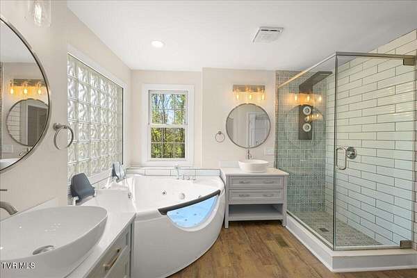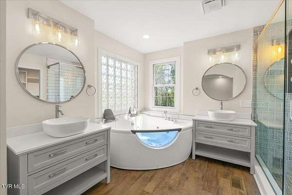 - 2+ Person Tub, Open Floorplan, Remodeled, Soaking Tub, Solid Surface Counters, Walk-In Closet(s)