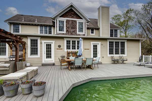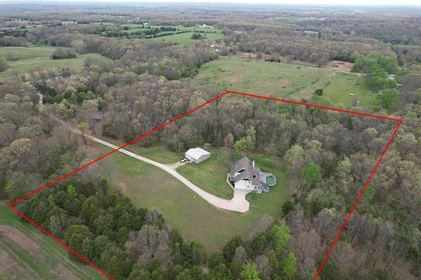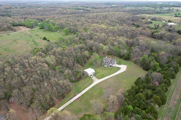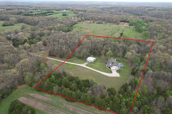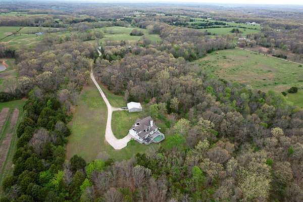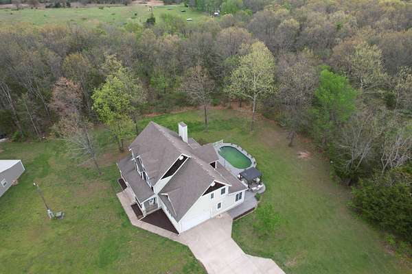 This custom 4 bedroom home is tucked in a quiet country setting. This secluded 9.66 acres, offers the perfect mix of woods, cleared area. Inside greets you with a large office, a gorgeous living room with fireplace and nice windows offering perfect natural lighting. Kitchen has custom cabinetry, huge island plus a formal dining room. Large walk in pantry, laundry room and a 1/2 bath is a bonus. Large patio door open to pool area with a 16' x 50' deck and fantastic views to the back of Property. Beautiful double staircase lead you to the second floor which offer the master suite with beautiful wood ceilings private bar and phenomenal Master Bath. 3 additional bedrooms and full bath on 2nd floor. Property offers a spacious outbuilding (36X40) that hosts a man cave, with a pool table area and family room for those great foot ball game parties. There is an additional full bath. There is not a full 2 car garage in this building due to the build out inside, but there is enough room for mowers and outdoor equipment.New Roof will be installed prior to closing.Closing to be at DD Hamilton in Marshfield.