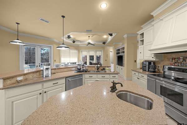 DON"T MISS OUT ON THIS HOME THAT HAS IT ALL - 4 bedrooms/3 bath/3 car garage with a pool and shop on a beautiful 2.66 acre tract. This home stands apart offering an elevated comfort with a large lot, privacy, and optimized efficiency features, all while being close to town for easy access to necessities and entertainment. This home is located in the Woodcrest Subdivision offering nearly 3 acres of space for privacy and comfort. With 3,703 sq ft of living space, the home sits on one of the largest lost in the neighborhood and is just a mile from Hwy 79 for easy access to nearby towns. The home features a 3 car garage (925 sq ft) and a split level one-level floor plan. The master suite includes double door entry, his and her closets, a soaking tub and walk-in shower. Two of the bedrooms share a jack-n-jill bathroom while the 4th sits on the other side with it's own bathroom. This makes for a great mother-in-law area or guest suite. The kitchen is equipped with high-end appliances including double ovens. There are two living areas and an office. Outdoors, you will find an in-ground salt water pool. Two of the home's bathrooms are directly accessible from the pool - great for gatherings and kids! The spacious backyard leads to a 1600 square foot shop with two overhead doors, electricity, and water is accessible. Plenty of room for a workshop and storage.