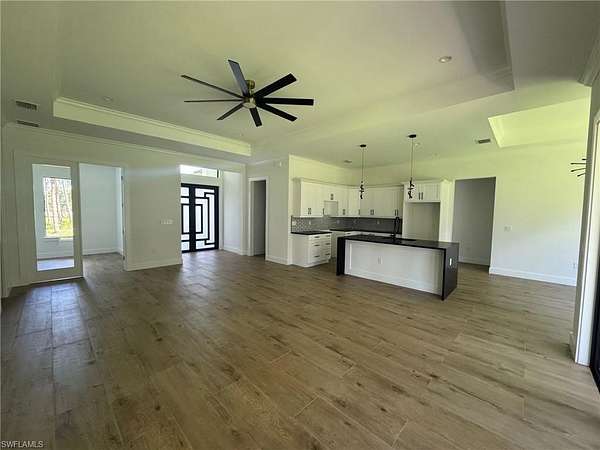 Est $3,436/moAmazing home built in a 2.5 acres lot, in the area of Golden Gate Estates, features 3 bedrooms + Den, 2.5 bath, & 2 car garage! Living area of 1,900 sq.ft and a grand total of 2,627 sq.ft. Upgrades include wood plank porcelain tile throughout, crown molding, quartz countertops, stainless steel appliances, and solid wood cabinets! The living room and master suite boast tray ceilings. Master wing features an oversized bedroom, 2 spacious Closets, double vanity, and glass door enclosed shower. The outside of this home will not disappoint either with a Summer Kitchen and a beautiful landscape, auto sprinkler system, and a large lanai. Impact resistant windows/doors! *Photos are from a previous same model home.