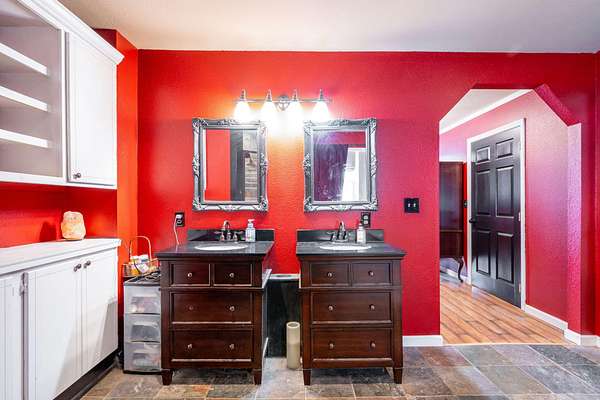 - Bathroom Mirror(s), Built-In Features, Ceiling Fan(s), Double Vanity, High Ceilings, High Speed Internet, Kitchen Island, Laminate Counters, Pantry, Separate Living Quarters, Split Bedrooms