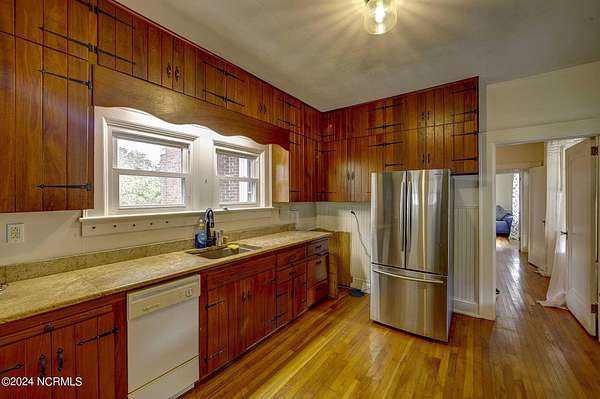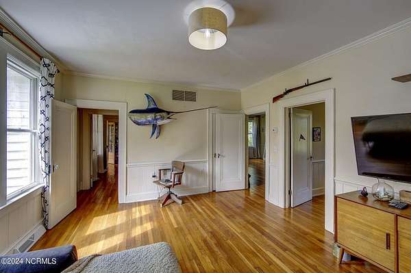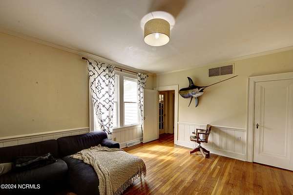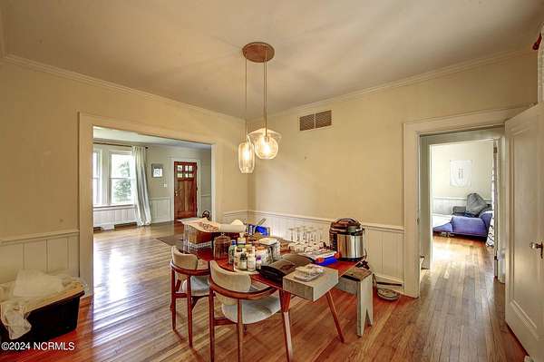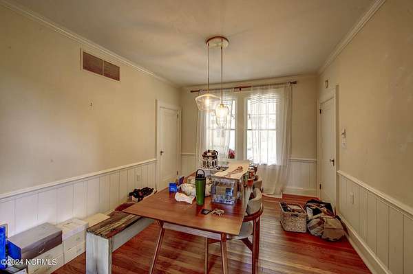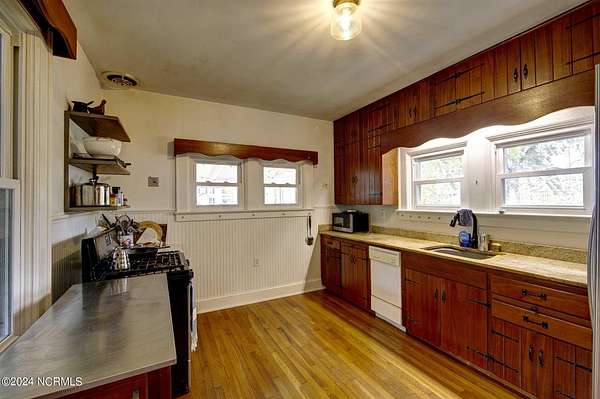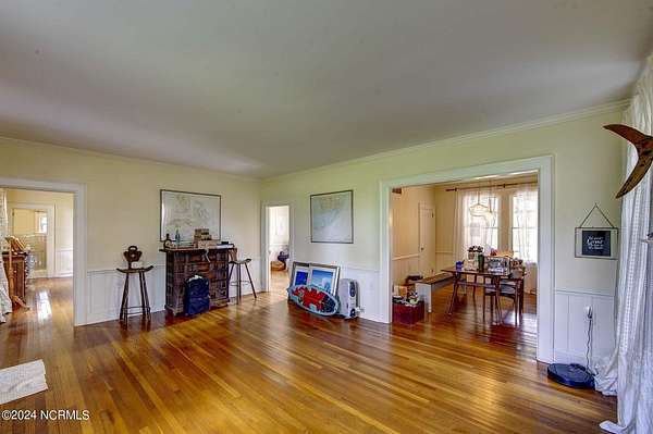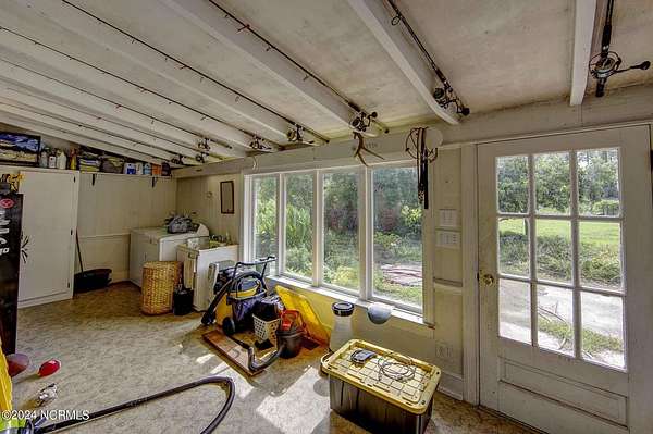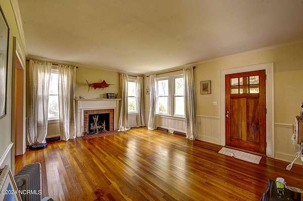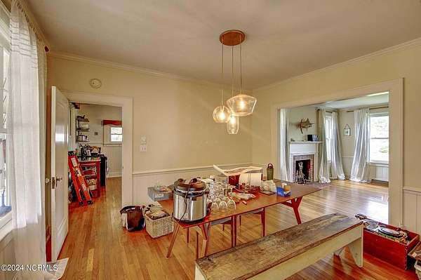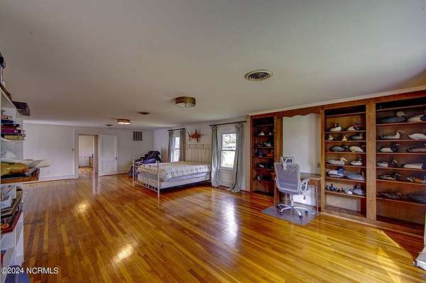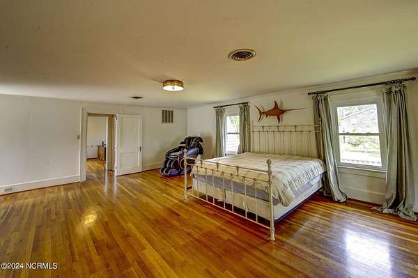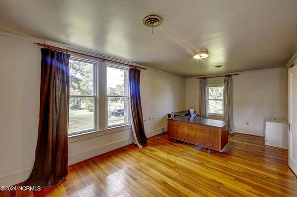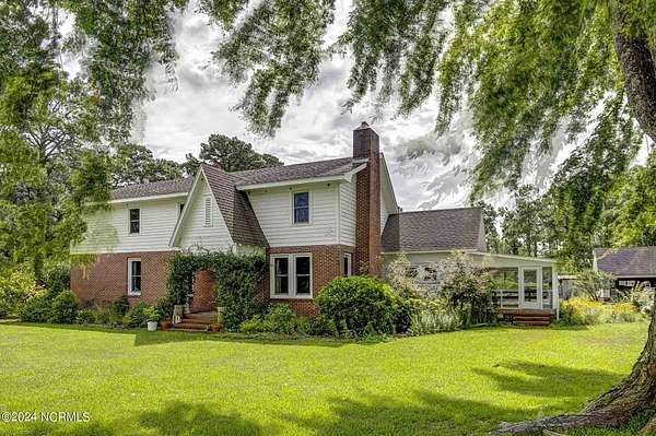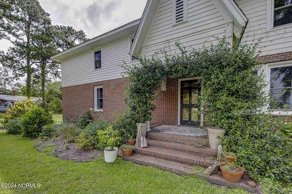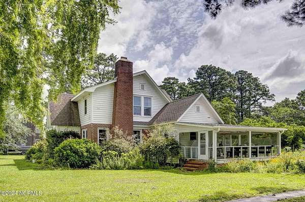 10+ Acres, Charming 4-bedroom, 3-bath home nestled in Swan Quarter, NC! Built in the 1930s, this character-filled residence boasts hardwood flooring throughout and generous living spaces. The main floor showcases two spacious bedrooms, each with its own ensuite bathroom, offering convenience and privacy. A cozy living room greets you at the front entry, complete with a gas log fireplace, perfect for cool evenings. Flowing from the living room is a quaint dining area that transitions into the tucked-away kitchen, creating an inviting atmosphere for family meals. Additional highlights include a mudroom with ample storage and laundry facilities, ensuring functionality for everyday living. Step outside onto the screened back porch, a serene spot for enjoying morning coffee or evening relaxation. Upstairs, discover a sprawling master bedroom alongside a smaller bedroom, ideal for a home office or nursery. This home is on municipal sewage and county water. Outside, the expansive yard is adorned with beautiful landscaping and perennial flowers, complemented by a large garden featuring 12 raised beds, perfect for gardening enthusiasts. There is also a detached garage offering versatile space for hobbies or storage needs. Adjacent, a sizable dog kennel provides a secure area for multiple pets. A rustic wooden barn offers additional storage. The acreage behind the home is composed of over 9 acres of planted pines. This parcel is currently enrolled in CREP and is restricted through 2033. Hyde County offers some of the best hunting and fishing opportunities in the state. Just down the road is a public boat ramp offering direct access to the Pamlico Sound. Lake Mattamuskeet is just a short drive as well and there are lots of public opportunities on the nearby state game lands. Call today to see this one for yourself!
