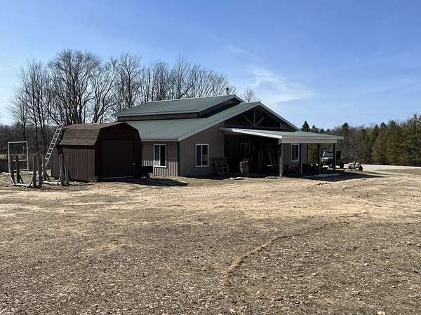 Discover a rare opportunity in beautiful Oceana County with this stunning 20 acre property, featuring a home/cabin and outbuildings. Whether you are looking for a serene place to call home or a private getaway, this versatile property offers it all. The home is thoughtfully designed with 1.5 bathrooms, a full kitchen, and a warm and inviting living room/gathering space, making it perfect for residential use and entertaining. The building is climate controlled with Fujitsu 'mini-splits' for heating, cooling, and dehumidifying. There is a cozy wood stove in the living area for those colder Michigan nights. Thare are thousands of acres of State land adjacent to the property. Additional garage space adds convenience for storage and workshop needs. Proposed split diagram in photos.