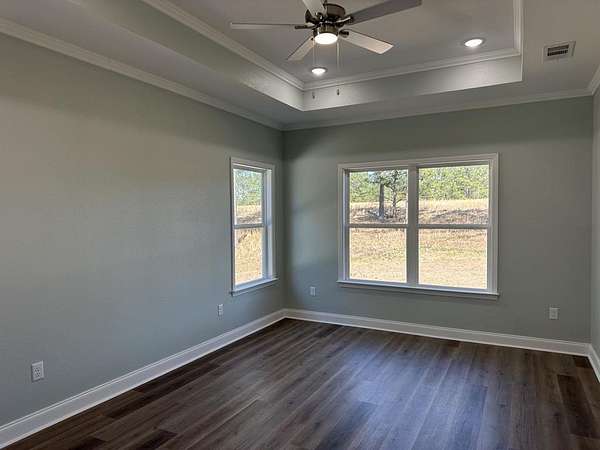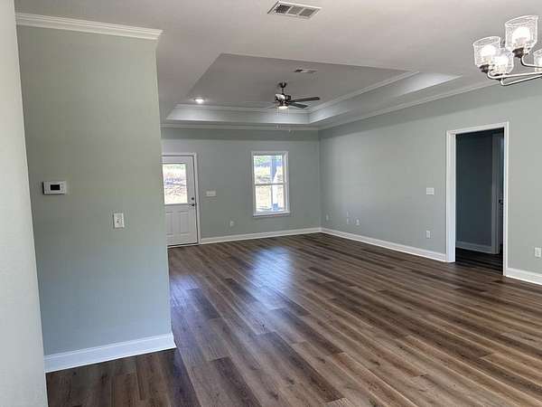 Welcome to your dream home! This under-construction 1,638 sq ft residence offers a perfect blend of modern design and comfortable living. Nestled on a generous 1.5-acre lot, this 3-bedroom, 2-bathroom home provides ample space for both indoor and outdoor activities. This property should be completed by late summer. Step inside to discover a spacious kitchen, complete with a breakfast bar island that seamlessly opens to a large living room and formal dining area. This open-concept layout is perfect for entertaining guests or enjoying family meals. The split floor plan ensures privacy and tranquility in the primary suite, which features a luxurious garden tub, a separate shower, and a private toilet area. The walk-in closet is designed to meet all your storage needs, offering plenty of space for your wardrobe. Convenience is key with a mudroom and laundry area, accessible directly from the attached 2-car garage. This practical addition helps keep your home organized and clean, providing a dedicated space for laundry and storage. This home is a perfect blend of style, comfort, and functionality, making it an ideal choice for anyone looking to enjoy a serene and spacious living environment. Luxury vinyl plank and tile throughout the home offer a blend of style and practicality, ensuring your home remains beautiful and functional for years to come.