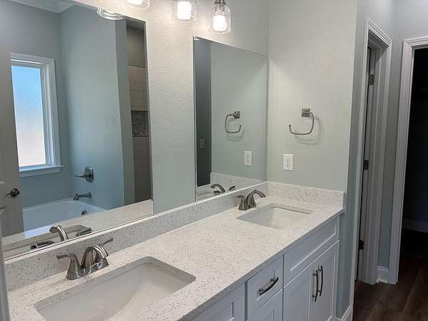 - Ceramic Tile Bath, Double Vanities, Garden Tub, Hard Surface Countertops, Laundry Room, Light & Airy, Master Bath, Master Bedroom Walk-In Closet, Master Suite, Open Floorplan, Separate Shower, Sheetrock, Tub/Shower Combo, Walk-In Closets