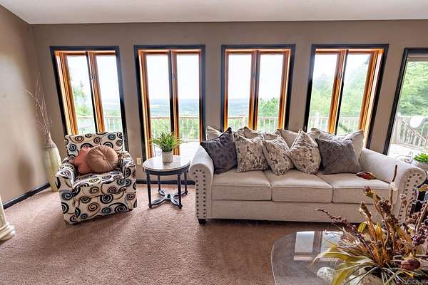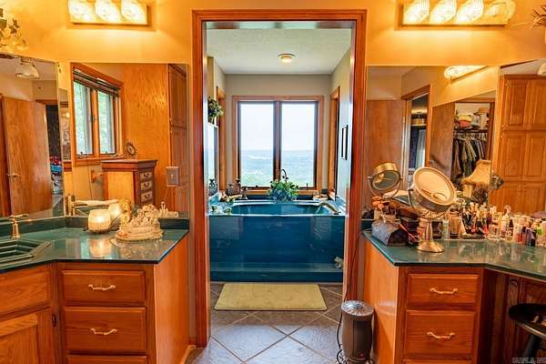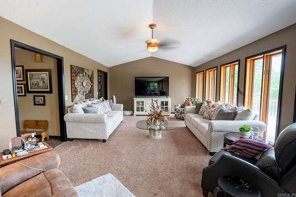 LAKEVIEW HOME in Heber Springs with a completely private backyard! The main level includes the kitchen, living area (with a wall of glass overlooking Heber Springs & Greers Ferry Lake), dining, half-bath, large laundry, very large master suite, dining room, oversized 2-car garage & a deck runs length of house! The walk-out living downstairs includes a very large living area, 2 bedrooms w/ Jack & Jill bath (each side has own toilet & vanity, shared tub/shower) and a 1-car garage for storage. New roof 2019, new deck in 2025, almost every window in the house was replaced in 2025! Built on POURED FOUNDATION WALLS...this well cared for home is in perfect condition!!