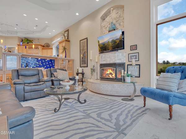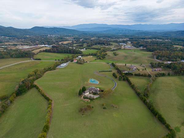 Welcome to your dream home! A splendid sanctuary where luxury meets tranquility. This newly listed, meticulously remodeled home spans a generous 4,000 square feet, featuring four elegant bedrooms and four en-suite bathrooms, providing ample space for comfort and privacy. Situated on 28.69 acres of rolling hills, this property showcases breathtaking views of the Smoky Mountains, creating a picturesque backdrop that encapsulates the essence of serene mountain living. The home is enveloped by a manicured landscape, including a fully stocked pond that adds a touch of natural beauty and a calming oasis right at your doorstep. The interior of the home echoes the exterior's promise of luxury and comfort, with top-notch finishings and meticulous attention to detail that ensure a high-quality living experience. The large, open-plan living areas bask in natural light, offering a warm and inviting atmosphere that extends into the well-appointed kitchen, outfitted with modern appliances and fixtures. Entertain your friends and family with your private pool and outdoor kitchen! For the automobile enthusiast or those needing extensive storage solutions, the property features a massive, 3,200 sf, climate-controlled detached garage, capable of accommodating up to 14 vehicles, RV or boats. Additionally, the detached garage offers water, waste and 50-amp hookup connections for an RV, making it perfect for outdoor adventurers. Security and privacy are paramount, with privately gated, paved entryway securing the premises and instilling a sense of exclusivity and peace of mind. This unique property not only serves as a private residence but also holds potential for various uses with A-1 zoning, such as rental income opportunities, a wedding venue, or a corporate retreat, thanks to its versatile layout and breathtaking surroundings. The location further enhances its allure, situated conveniently near essential shopping services and attractions such as Dollywood, and the charming towns of Pigeon Forge and Gatlinburg. These nearby amenities and attractions offer delightful leisure activities without straying too far from the comfort of your mountain getaway. This property, with its blend of luxurious interiors, expansive outdoor spaces, and awe-inspiring views, offers an unrivaled opportunity to own a slice of paradise! Experience the ultimate mountain lifestyle and escape that feels like a perpetual vacation, yet perfectly designed for everyday living. Your mountain sanctuary awaits you!