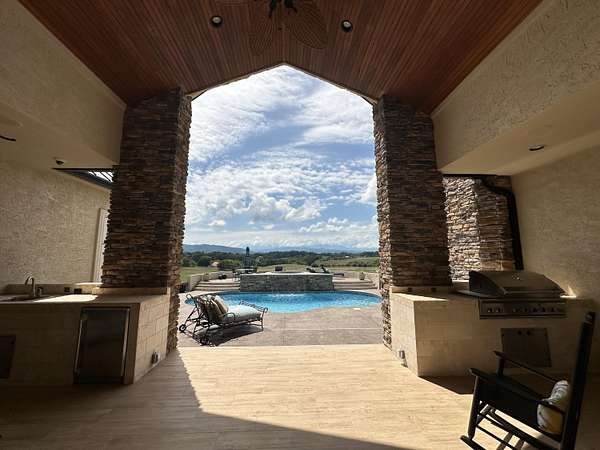 - Agricultural, Cleared, Country Setting, Covered, Deck, Gas Grill, In Ground, Landscaped, Lighting, Orchard(s), Outdoor Pool, Patio, Pond On Lot, Pool/Spa Combo, Porch, Private, Rain Gutters, View, Waterfall
