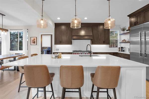 Quintessential Colorado living — where the wildlife roam, the mountains steal the show, and privacy isn’t a luxury… it’s your everyday reality. Set on a private, 3+ acre, tree-lined lot, this property captures everything people dream about when they picture life in the foothills. Sweeping mountain views. Towering trees. Deer wandering through the yard. The kind of setting that makes you exhale the second you pull in. The home itself has been transformed with an unbelievable luxury remodel. High-end finishes including quartz countertops, Wolf and JennAire appliances, Hunter Douglas blinds, thoughtful design, and elevated details throughout create a space that feels both sophisticated and welcoming. Natural light pours in, framing those incredible views from nearly every angle. The walk-out basement expands your living space even further, blending seamlessly with the outdoors. And speaking of outdoors — this is where the magic really happens. A cozy front porch with a swing sets the tone. Slow mornings. Coffee in hand. Watching the world wake up. A fully stocked koi fish pond with a tranquil waterfall adds a peaceful, almost resort-like feel. Multiple outdoor living areas give you space to gather, unwind, and entertain effortlessly. There’s a hot tub perfectly positioned for star-filled nights and a firepit ready for stories, s’mores, and Colorado evenings that stretch a little longer than planned. The heated garage is the cherry on top — practical, comfortable, and ready for all your gear, projects, or toys. This isn’t just a beautifully remodeled home. It’s the Colorado lifestyle dialed all the way up — privacy, views, wildlife, luxury finishes, and outdoor spaces designed to be lived in and loved. Walkable the local elementary school & Mt Vernon Country Club. Have your agent ask us about our incredible incentives when using our preferred lender & make sure your agent points out all the updates this house has - composition 4 roof, new windows, etc.