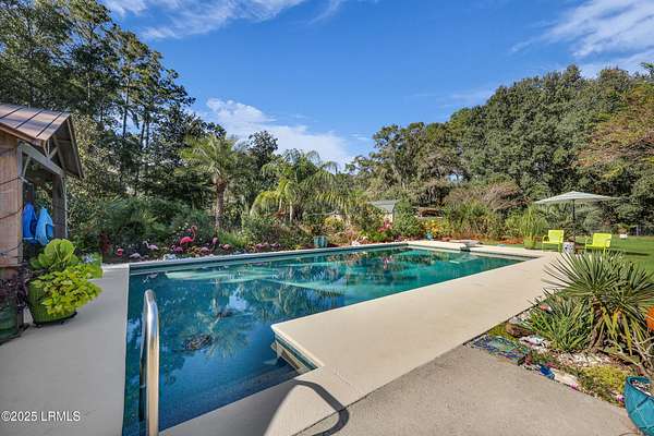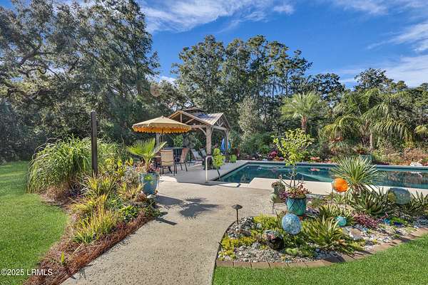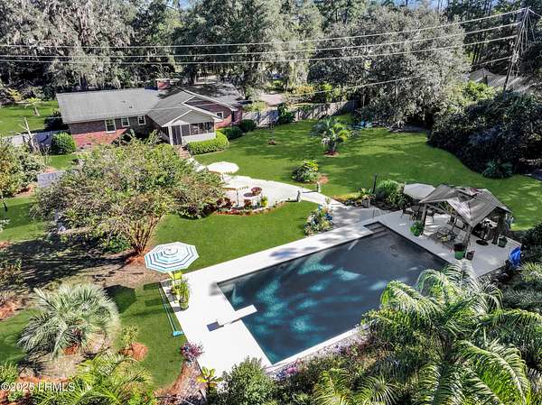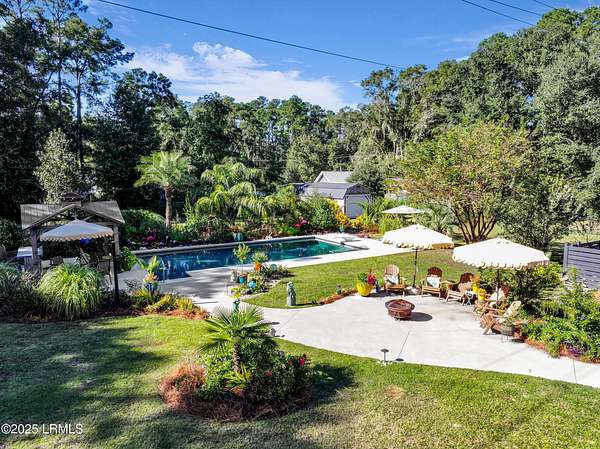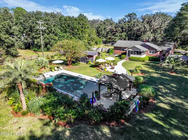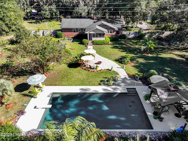 Welcome to your own Lowcountry Paradise! Nestled on 2.5 acres of landscaped beauty, this property blends comfort, recreation, and freedom - with no HOA restrictions. Bring your boat, RV, and toys! Enjoy resort-style living with a 20x40 heated/chilled pool with diving board, surrounded by lush greenery and mature oaks. Entertain year-round with a full outdoor bath and shower plus a covered RV pad with 30 AMP hookup. Lovingly updated with newer HVAC, foam insulation, energy-efficient windows, appliances, and pool equipment. The partially fenced yard offers privacy and open space. Just minutes from I-95 and public boat landings, with quick access to Beaufort, Hilton Head, Bluffton, and Savannah. Your peaceful retreat or family homestead awaits!
