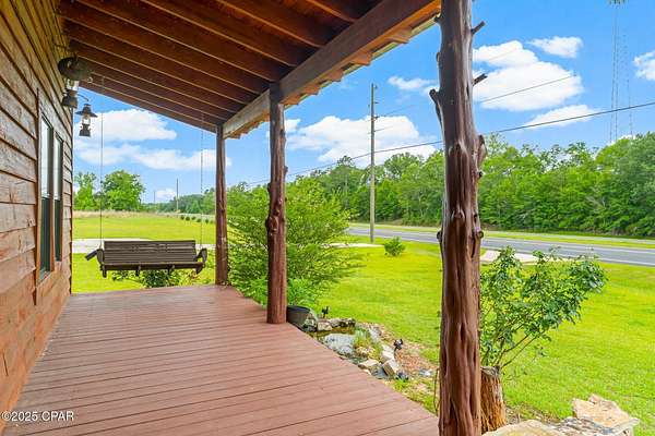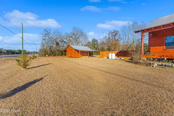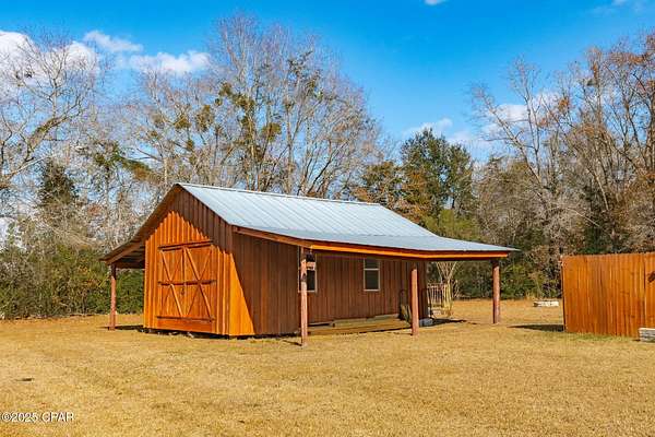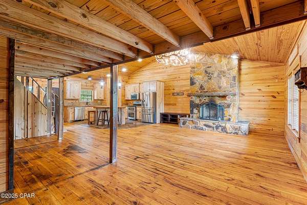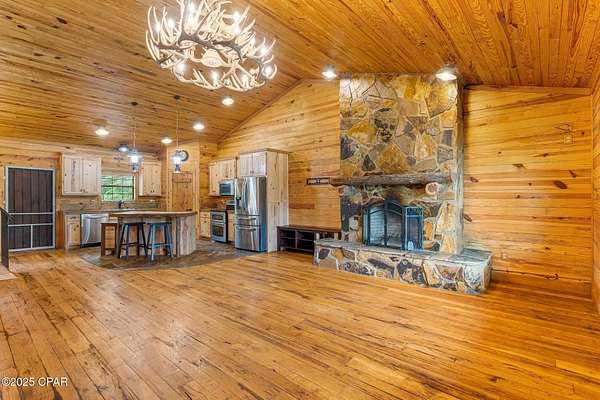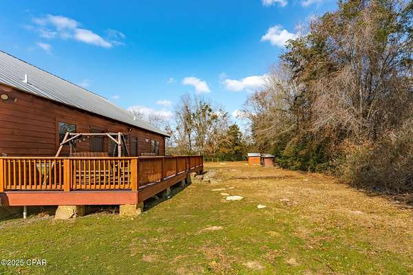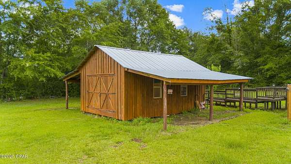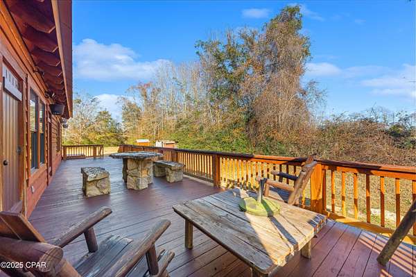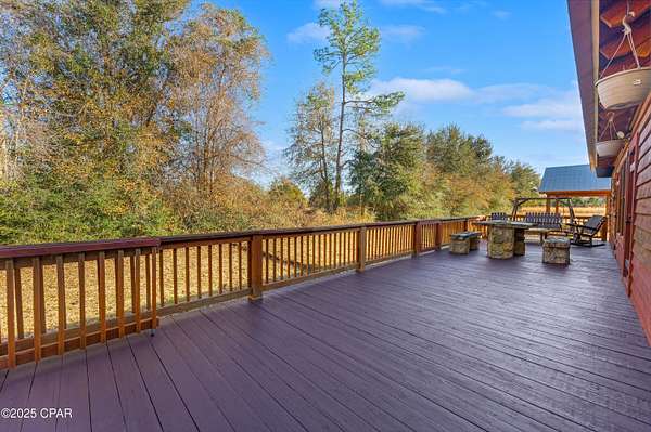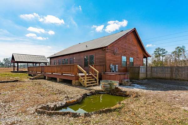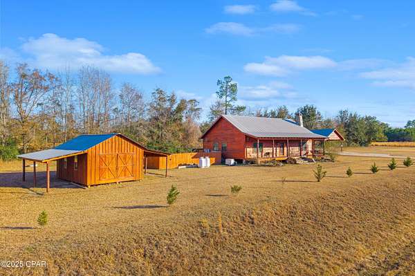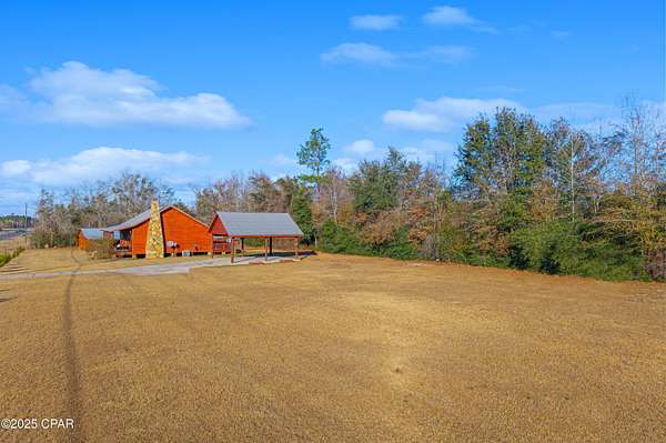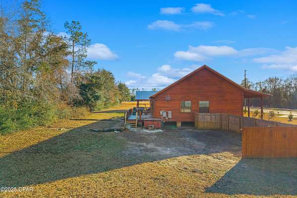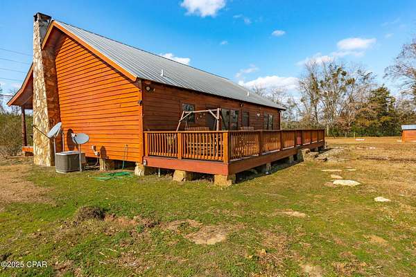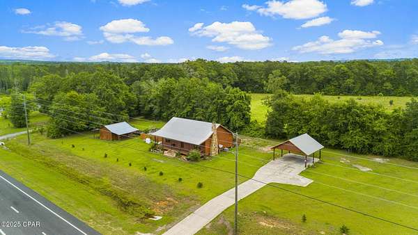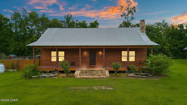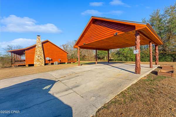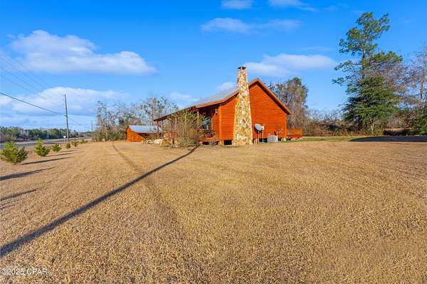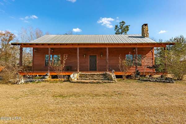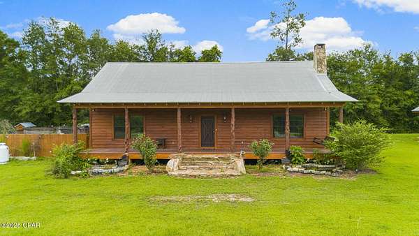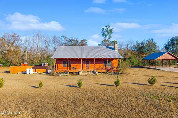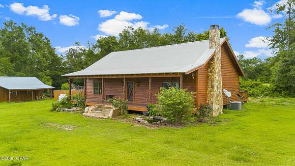 CURRENTLY UNDER CONTRACT, SELLER WILL CONSIDER BACKUP OFFERSDiscover the rare opportunity to own an authentic log cabin on nearly 6 acres of beautiful land in Chipley, Florida. This home provides a serene retreat with ultimate privacy, perfect for the outdoor enthusiast. It includes 2 full bedrooms, one and a half bathrooms, and an additional loft area upstairs, suitable for a third bedroom or storage. As you enter, you will instantly notice the hardwood flooring throughout, rustic lighting fixtures, floor to ceiling stone-woodburning fireplace, tongue & groove vaulted ceilings, and recessed lighting in the living room. The open concept floor plan features a kitchen that contains a large island, custom wood cabinets and pantry, and stainless-steel appliances. The one-of-a-kind wood dining table conveys with the sale. There is a washer and dryer and an additional refrigerator in the laundry room that will all convey with the sale as well as a deep freezer that will remain with the property. The primary bedroom is spacious and contains a large walk-in closet and electric fireplace. The ensuite bathroom features a double vanity, stone shower matching the wood burning fireplace in the living room, and large soaking tub. The front porch is massive, measuring approximately 50' x 8, which allows ample room for rocking chairs and the opportunity to enjoy sunsets on the front porch swing. This gem of a property is fully equipped with a Generac Generator ideal for power outages, and includes a double carport with additional attic storage, a large back deck area, and a powered workshop. The property is expansive enough for hunting white-tail deer during the season and has the potential to establish a shooting range for the sportsman. This property offers a blend of rustic charm and modern conveniences, making it an ideal home for outdoor enthusiasts. With this location, you are only a short 6-minute drive to Walmart Supercenter, Blue Lake Park (Earl Gilbert Landing), and various restaurant opportunities. Don't miss out on the chance to own this gem in Chipley, Florida.