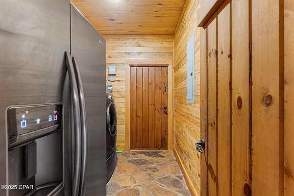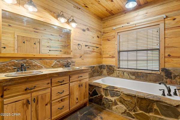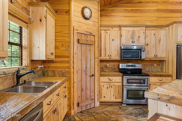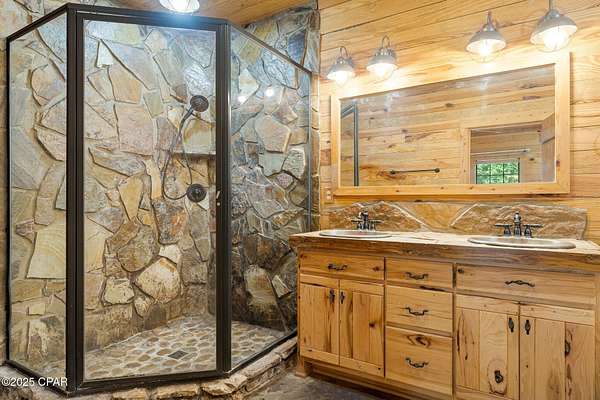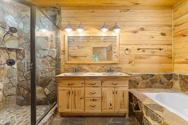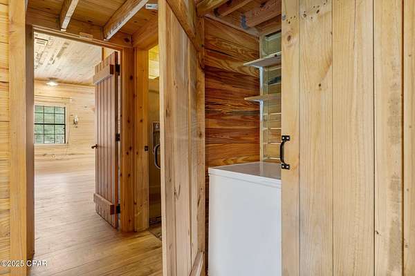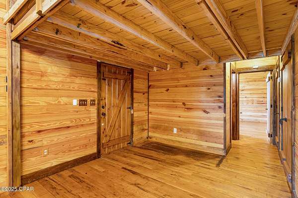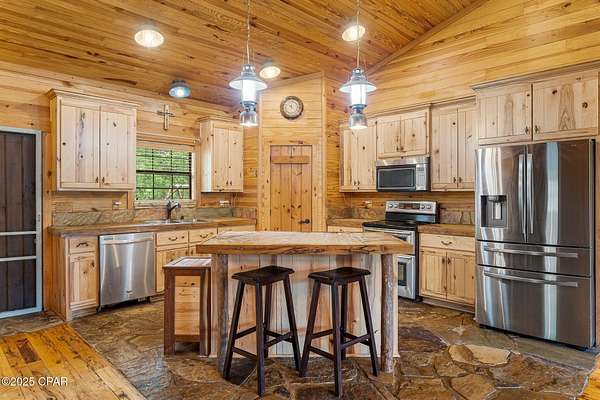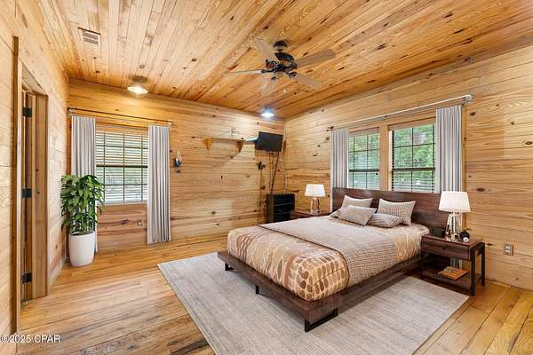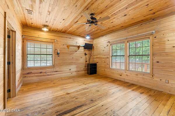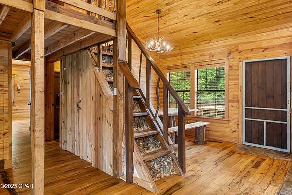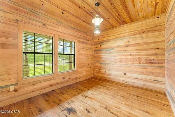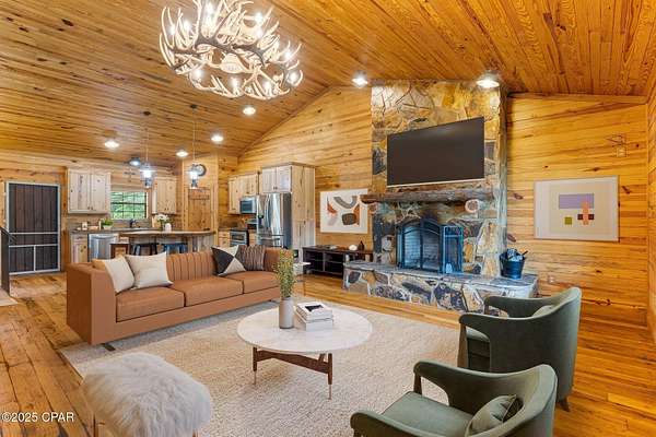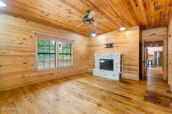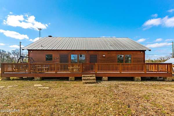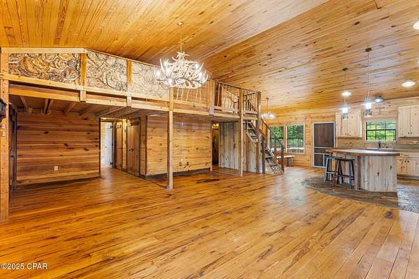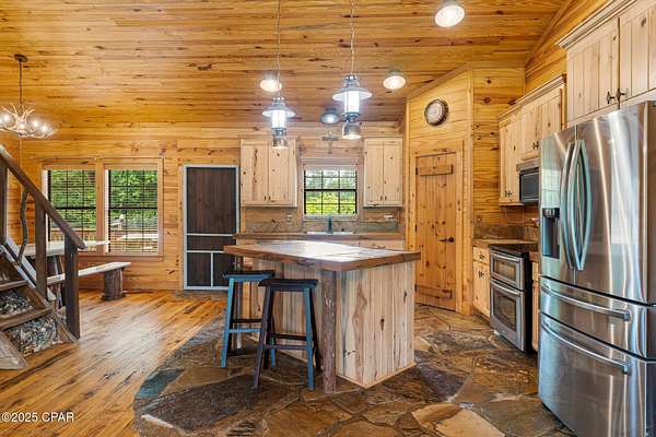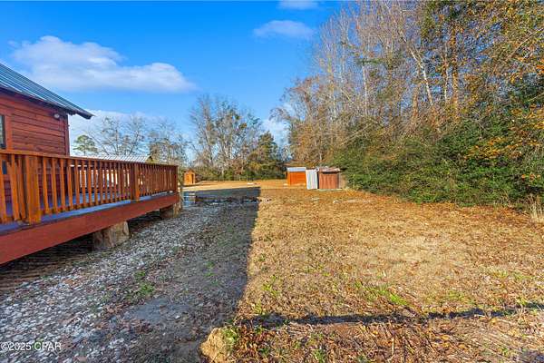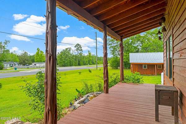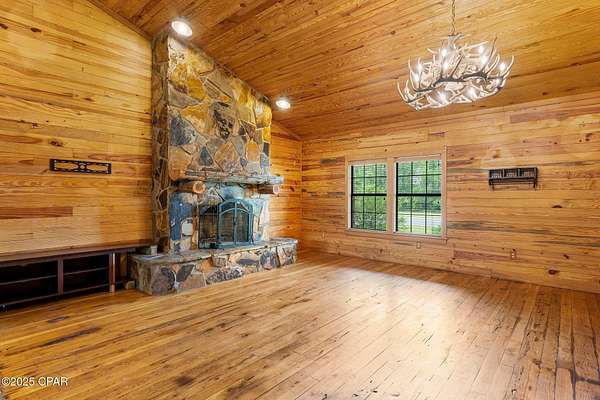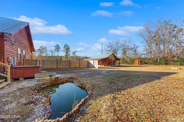 CURRENTLY UNDER CONTRACT, SELLER WILL CONSIDER BACKUP OFFERSDiscover the rare opportunity to own an authentic log cabin on nearly 6 acres of beautiful land in Chipley, Florida. This home provides a serene retreat with ultimate privacy, perfect for the outdoor enthusiast. It includes 2 full bedrooms, one and a half bathrooms, and an additional loft area upstairs, suitable for a third bedroom or storage. As you enter, you will instantly notice the hardwood flooring throughout, rustic lighting fixtures, floor to ceiling stone-woodburning fireplace, tongue & groove vaulted ceilings, and recessed lighting in the living room. The open concept floor plan features a kitchen that contains a large island, custom wood cabinets and pantry, and stainless-steel appliances. The one-of-a-kind wood dining table conveys with the sale. There is a washer and dryer and an additional refrigerator in the laundry room that will all convey with the sale as well as a deep freezer that will remain with the property. The primary bedroom is spacious and contains a large walk-in closet and electric fireplace. The ensuite bathroom features a double vanity, stone shower matching the wood burning fireplace in the living room, and large soaking tub. The front porch is massive, measuring approximately 50' x 8, which allows ample room for rocking chairs and the opportunity to enjoy sunsets on the front porch swing. This gem of a property is fully equipped with a Generac Generator ideal for power outages, and includes a double carport with additional attic storage, a large back deck area, and a powered workshop. The property is expansive enough for hunting white-tail deer during the season and has the potential to establish a shooting range for the sportsman. This property offers a blend of rustic charm and modern conveniences, making it an ideal home for outdoor enthusiasts. With this location, you are only a short 6-minute drive to Walmart Supercenter, Blue Lake Park (Earl Gilbert Landing), and various restaurant opportunities. Don't miss out on the chance to own this gem in Chipley, Florida.