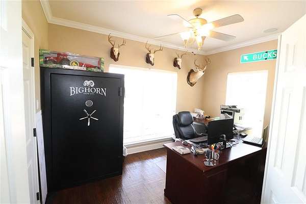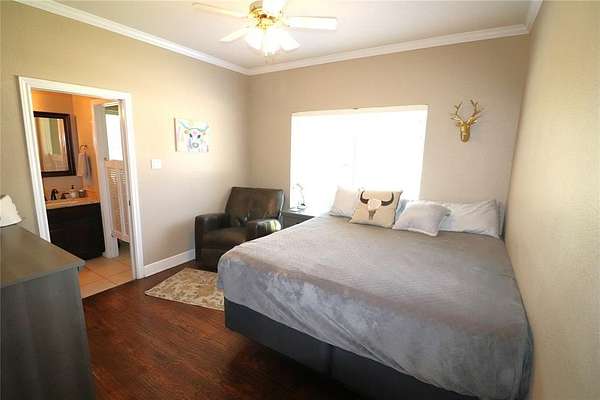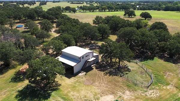 Absolutely Amazing 37 ACRES North Texas Property is just one hour from Fort Worth! Fantastic custom built 4 bedroom, 2.5 bath, 3.5 car garage home sitting on 37 acres of gorgeous improved coastal grass & oak timber land. Hilltop home overlooks scenic pasture, creek and ponds. Gated brick entry. Pond is stocked with huge game fish and exceptional deer along with other game can be found right outside the back door. Home has a 17ft tall ceiling in the living room with tons of natural light pouring in from the atrium custom windows. Large windmill blade fan keeps the air moving on those warm summer afternoons. A gas fireplace awaits those cold winter days. Drink bar and glass seating area is perfect for entertaining guests. Beautiful hand scraped hardwood floors throughout.The kitchen has all newer appliances and a large gas cooktop island with a warming tray. Beautiful granite countertops and tile backsplash. The breakfast bar supports a copper farmhouse sink, ice maker and dishwasher. Double stack ovens make holiday baking a breeze! The master bedroom has a large walk-in closet, a walk-out covered patio with perfect country views, enough space for a second office. The master bath has a large garden tub, new granite countertop and all new faucets and hardware. The guest bedrooms share a Jack and Jill bathroom. The 4th bedroom currently serves as a home office. Home has several amenities including a formal dining room, dual climate zone, book shelves and hall tree with bench seat. Drywall finished garage. Lawn sprinkler irrigation and more. 24 x 36 barn with 2 - 12 x 36 covered sheds. Barn has a fully self contained loft apartment with complete kitchen & bath is approx. 18 x 24. Cross fencing and stocked pond. Strong water well aprox 380 ft deep with good tasting drinking water. Additional 63 Acres available with paved road fronatage FM 1749.