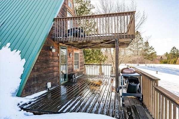 Stunning 3 bedroom, 2 bath, 4 huge decks, A frame log home on 12+ acres! Everything updated with quality and thoughtfulness.