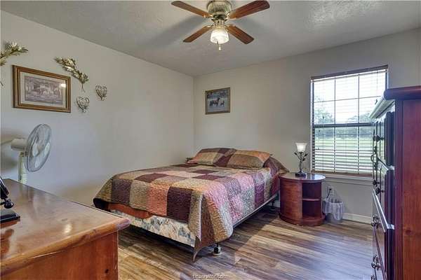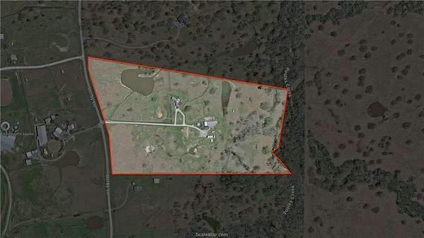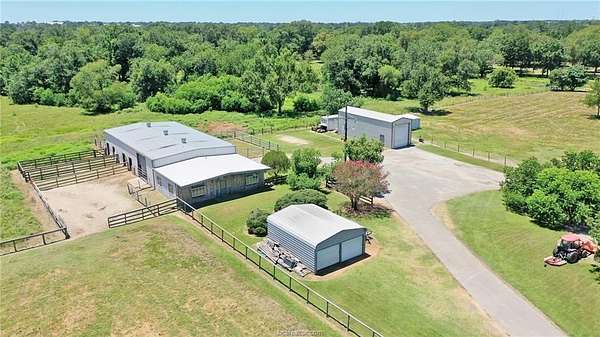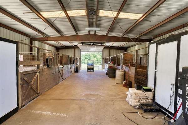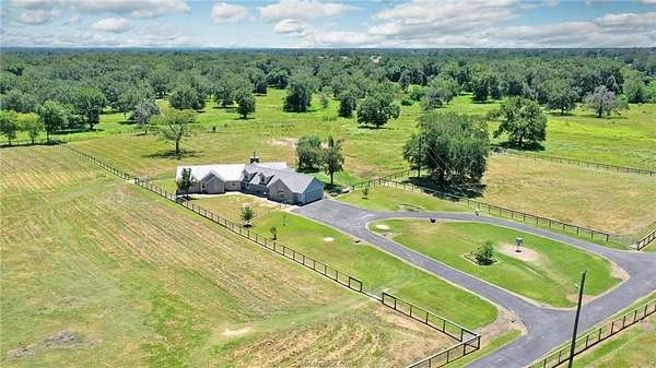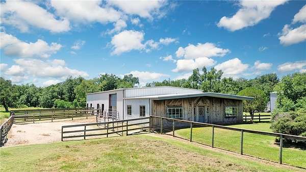 This Beautiful Equestrian Ranch is comprised of 40+/- Acres located just off Hwy 21 E within the highly sought after Madisonville Farms. Enter through the gated entrance and follow the asphalt driveway to the well-maintained home boasting a 2400 SF ranch style home with 3-bedrooms, 2-bathrooms, and an oversized attached 2-car garage. The all-electric home features ceramic tile and waterproof plank vinyl flooring, a wood burning fireplace, lg. pantry, 2 primary walk-in closets, 2018 metal roof, chain length fence, and a whole house Generac generator. Currently under an AG exemption, offering two ponds, a 7-stall barn with run pens, tack room, wash rack, stud pen with pipe rails, a 50x16x18 motorhome barn with 50-amp connection and rollup doors, perimeter and cross fence. With a quick and easy commute to Bryan/College Station, Houston, and Dallas this beautiful Texas property offers the perfect blend of privacy and functionality for your full time living and equestrian endeavors.