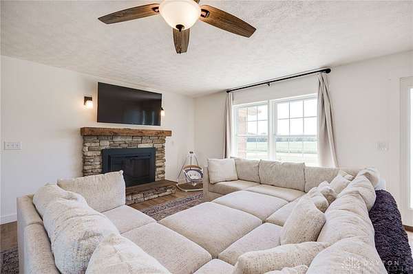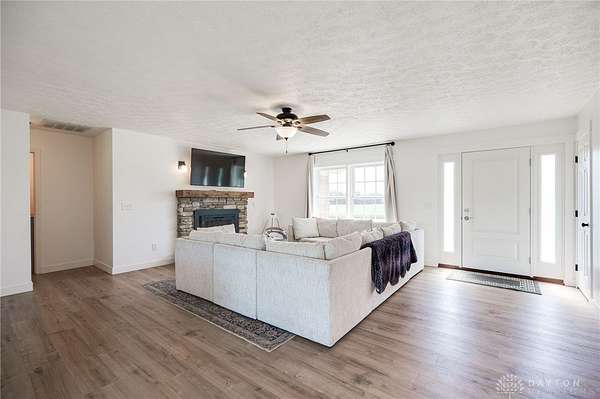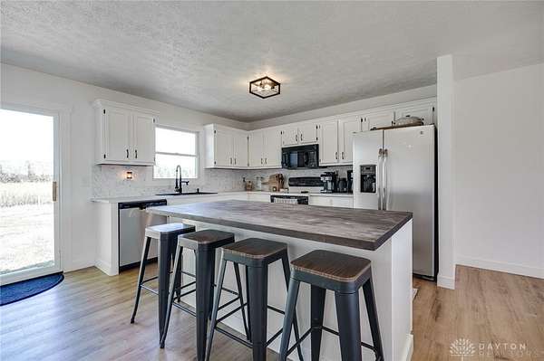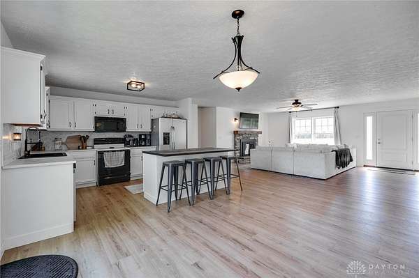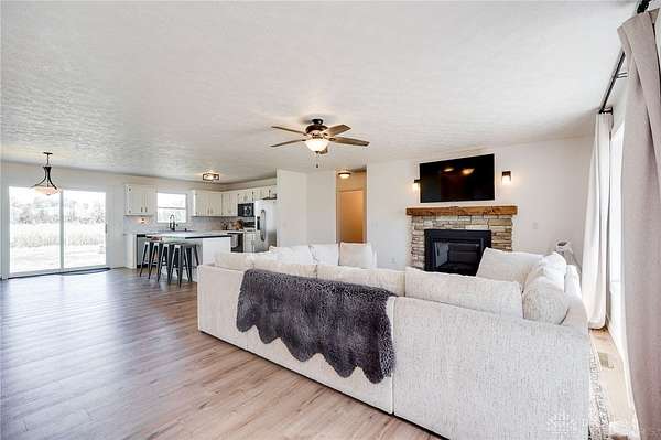 - Open floor plan with stone electric fireplace o Updated kitchen with large island o Fresh flooring, neutral paint, new water softener 2025, and new HVAC system o 5 acres: part maintained yard, part natural (ideal for animals, hay, or room to roam) o Outdoor firepit, shed, and landscaped rock beds o Attached garage