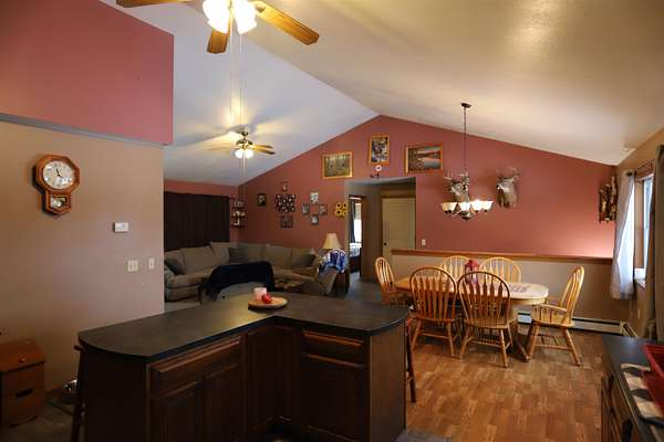 Remote Raised Ranch with views of the mountains. This house has a nice spacious layout for the modern look in a home. This is a 3 bedroom home with many bonus rooms. It has a kitchen on both floors with a refrigerator and stove with each. The open concept of the kitchen/ Dining/ Living rooms is a very nice feature. The 3 bedrooms are located on the first floor if desired. You can keep the jackets and shoes in the mudroom from the oversized garage. the basement level offers a wonderful radiant heated floors with a walkout basement exit/entrance. This property boasts of a great 22+ acres of open/ wooded area for hiking, hunting or overall exploring. Come view this wonderful secluded home. It could be yours unless you wait too long.