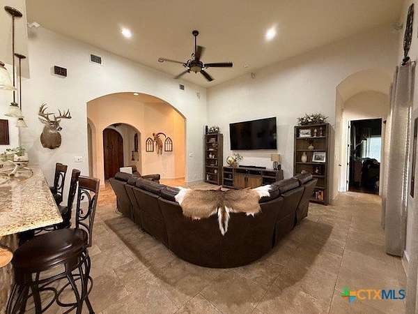 Welcome to 26447 Lewis Ranch Road - Luxury Hill Country Living with Resort-Style Amenities Nestled in the prestigious Lewis Ranch community, this exceptional property offers the ultimate in comfort, entertainment, and functionality. Set on a spacious 3+ acre lot, this beautifully updated home features a resort-style backyard complete with a heated pool and attached spa, less than two years old, powered by a 1,000-gallon buried propane tank. Enjoy evenings gathered around the custom fire pit or sharpen your short game on the private putting green-all surrounded by fully turfed backyard and side yard spaces for effortless maintenance and year-round greenery. The main house boasts a covered back porch with a beautiful outdoor kitchen that overlooks the sparkling pool and spa-perfect for entertaining or relaxing at home. And it's on a private well! Need even more space? The impressive 40' x 60' insulated shop is fully heated and cooled with three mini-splits and includes its own 40' x 10' covered porch, ideal for additional gatherings, hobbies, or workspace. Guests will love the privacy of the separate one-bedroom, one-bath guest house, providing a comfortable retreat for family or friends. All outdoor improvements-including the pool, spa, turf, putting green, fire pit, and shop-are less than three years old. Major systems have been updated as well, with both AC units in the main house replaced three years ago. This is Hill Country living at its finest, with luxury, functionality, and entertainment in mind-ready for you to move in and enjoy.