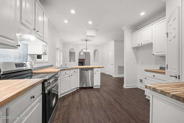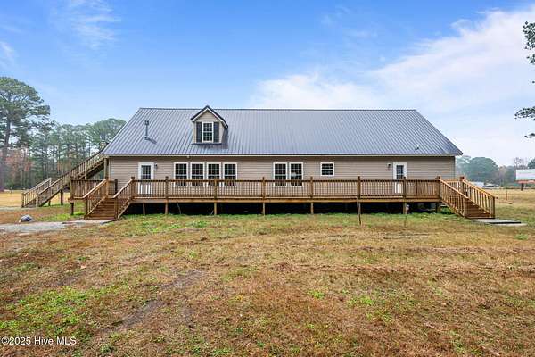 Welcome to this thoughtfully renovated home set on 2.28 spacious acres with direct frontage on NC Highway 43-offering the perfect blend of comfort and convenience. With three bedrooms, three full bathrooms, and two additional flex rooms, this property provides ample space for a variety of lifestyles. There is a large eat in kitchen with butcher block counter tops open to the family room. In addition there is a living room as you walk in the front door. The primary suite and and 2 additional guest bedroom are conveniently located on the first floor, offering easy access and comfortable main-level living. Upstairs, a full bath, office, and flex space open to a private exterior deck with steps down giving it a private entrance. There is an enormous walk in attic. Out back, an expansive full-length deck 12x65 stretches across the rear of the home, creating a wonderful outdoor living and entertaining area. A covered metal carport, a small garage area for storage , and an additional two horse stall offer opportunities. Perfectly situated just 30 minutes from both New Bern and Greenville, this property delivers county living. Move-in ready and beautifully updated-this is a must-see for anyone looking for space, convenience, and modern comfort.
